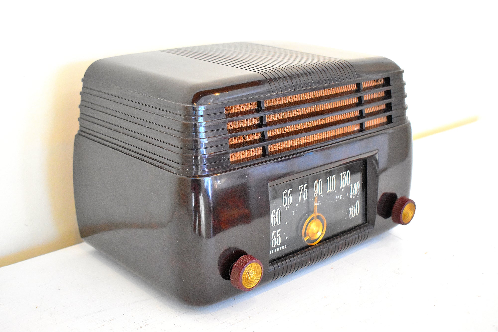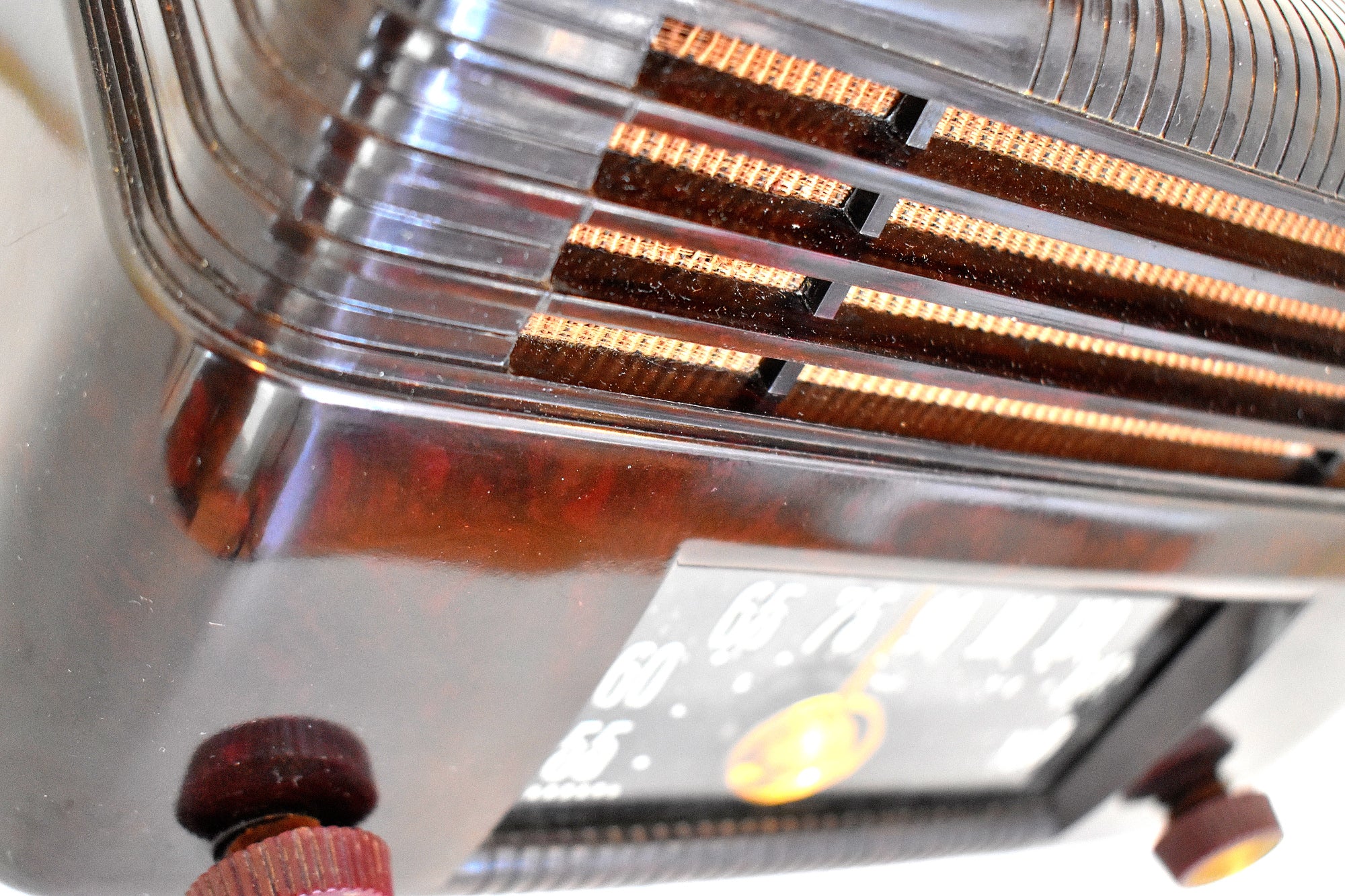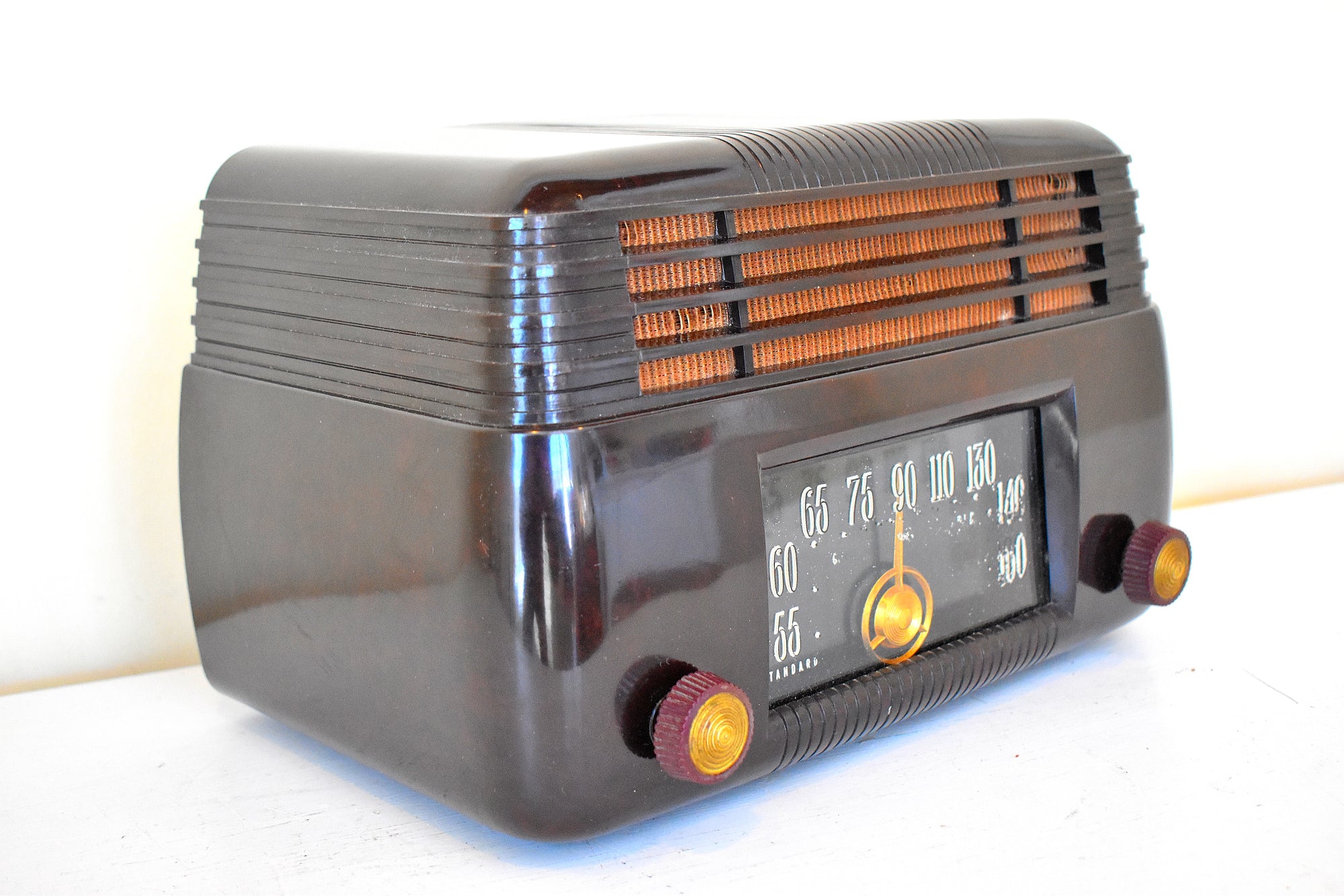CABINET CONDITION: Cabinet is original factory molded swirly brown Bakelite cabinet. No cracks, chips or major scratches or missing pieces. Not repainted, no touch up not over sprayed.