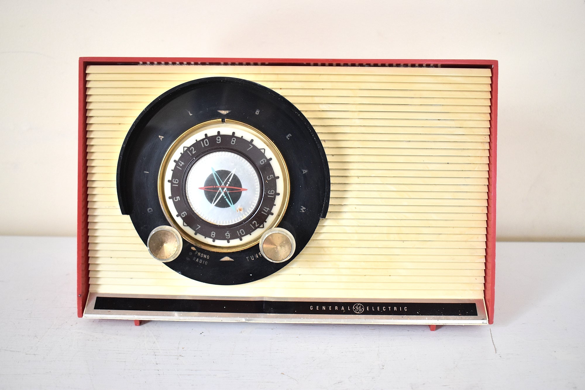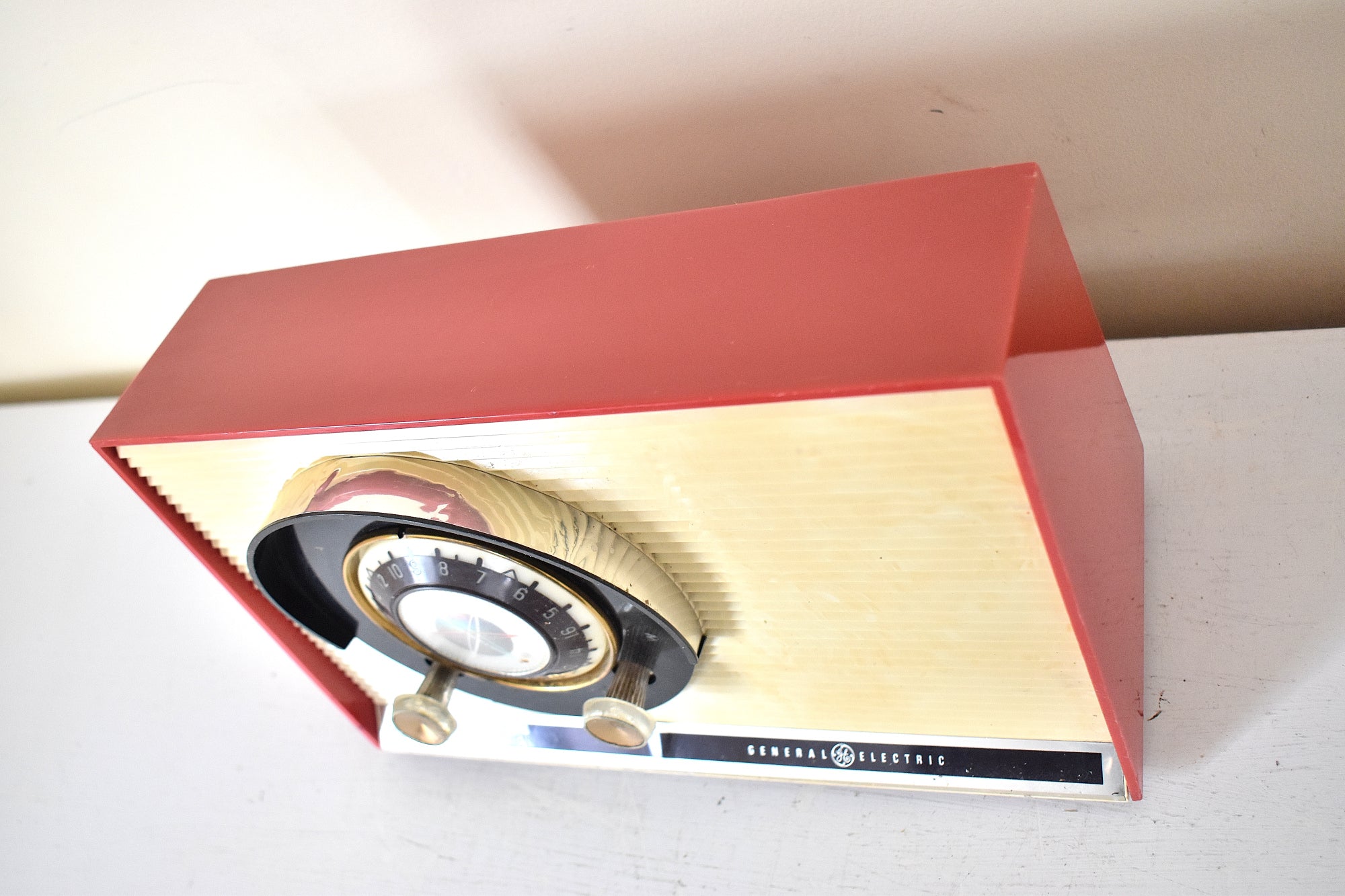 Cardinal Red 1959 General Electric Model 861 Vacuum Tube AM Radio Sputnik Atomic Age Beauty!