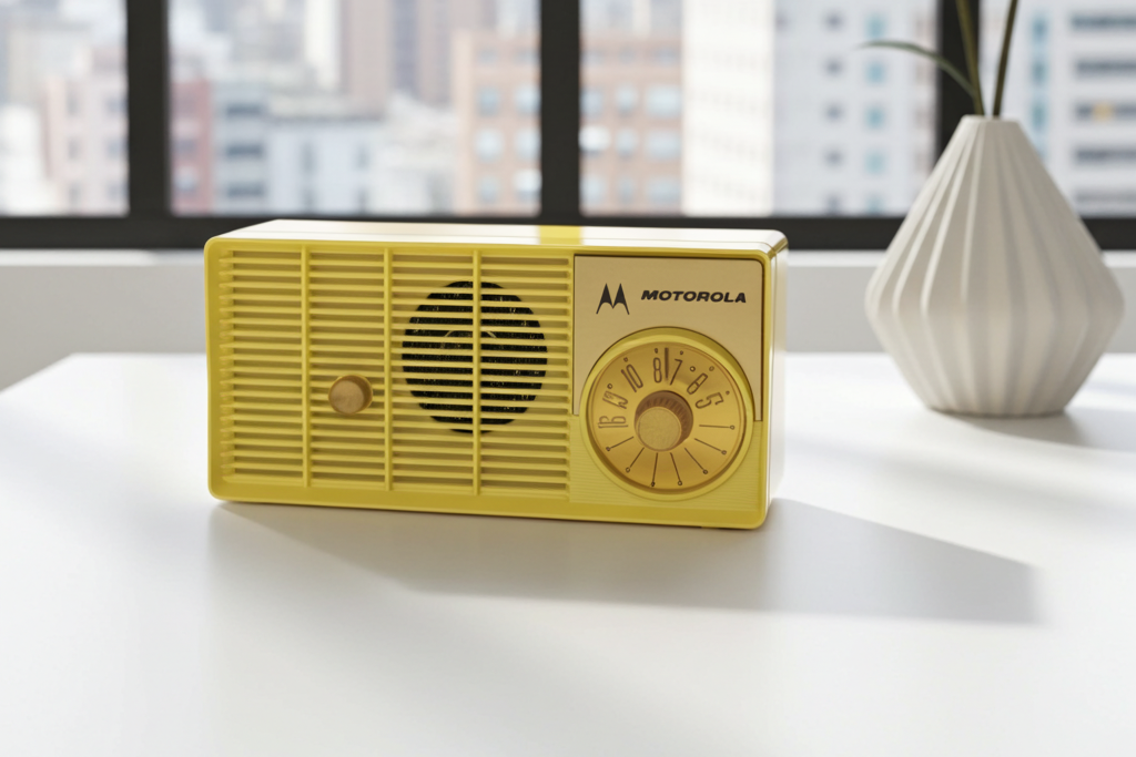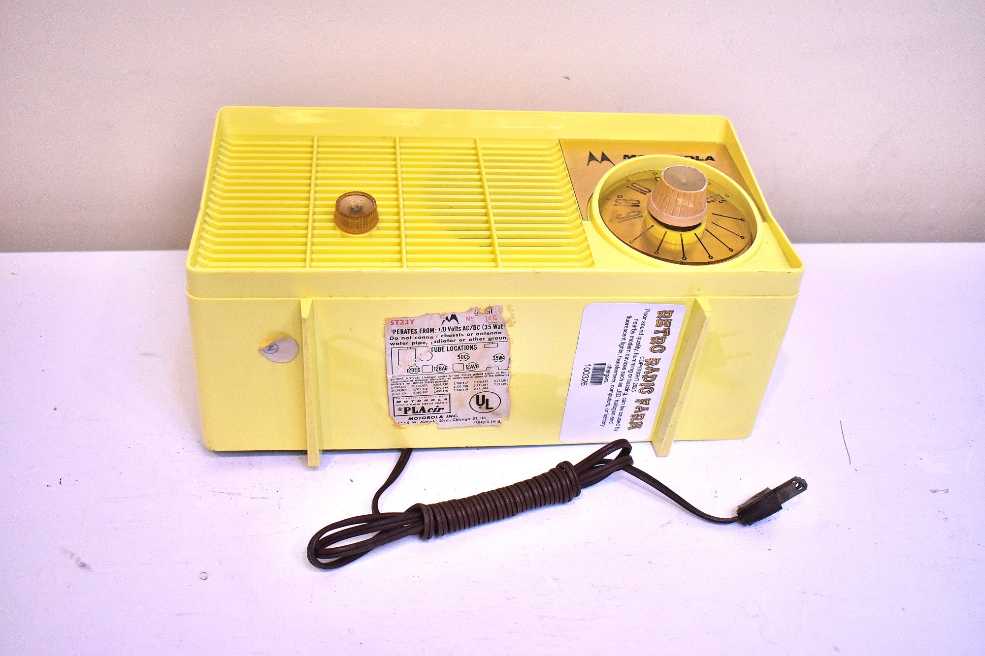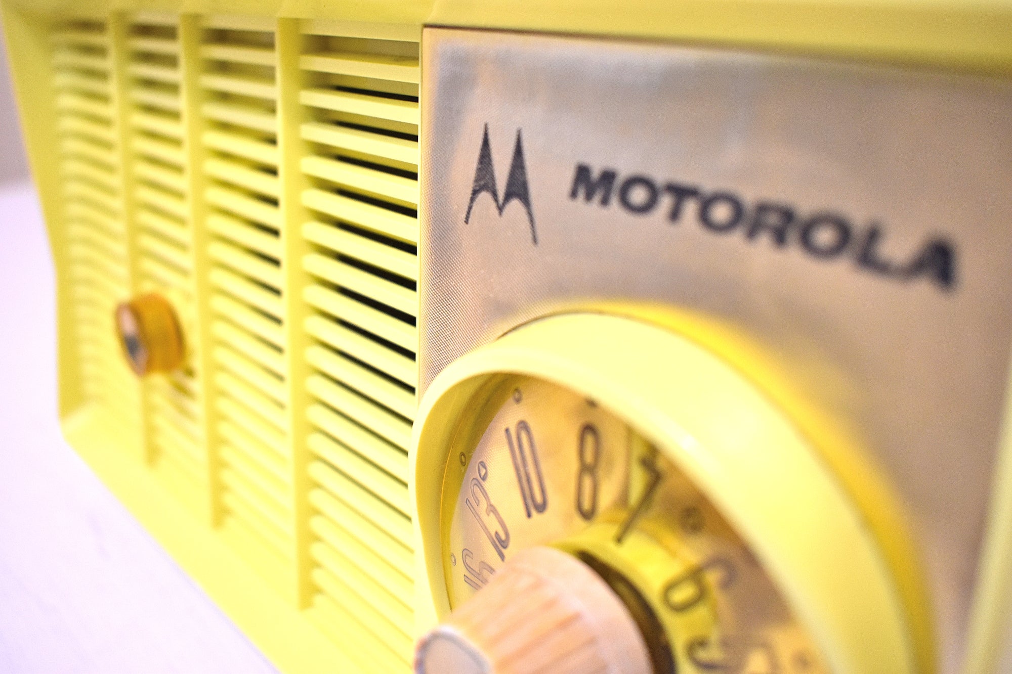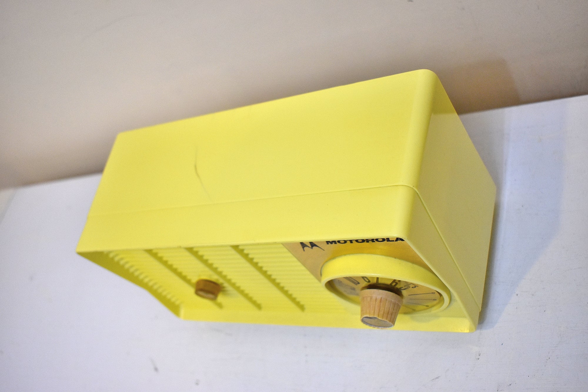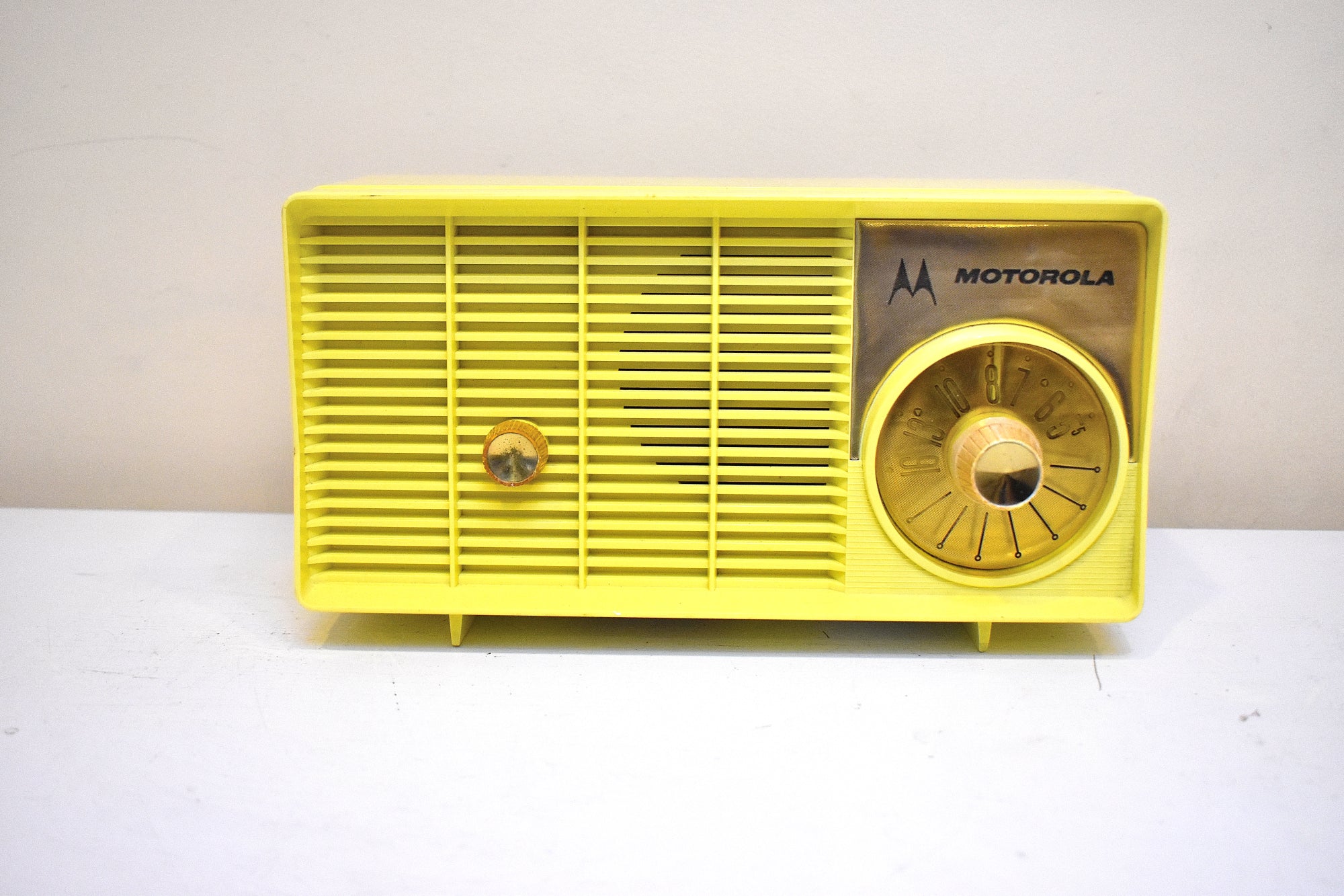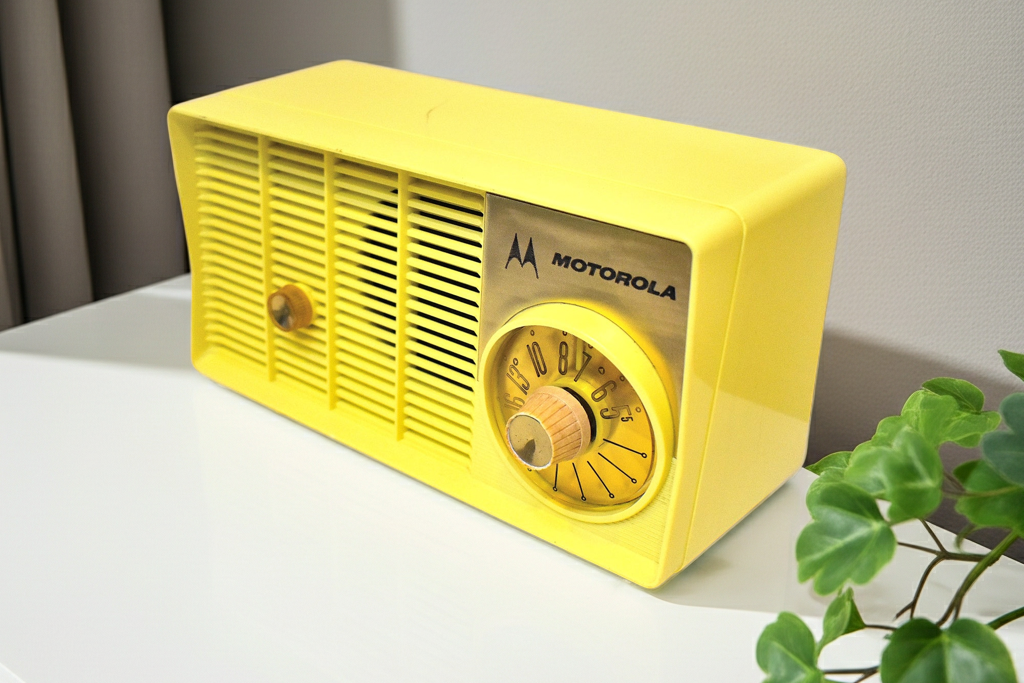 DESCRIPTION: Tabletop vacuum tube AM radio manufactured by Motorola in 1957-58 time frame in excellent working condition. Very rare original citron yellow color. Molded yellows are really rare.