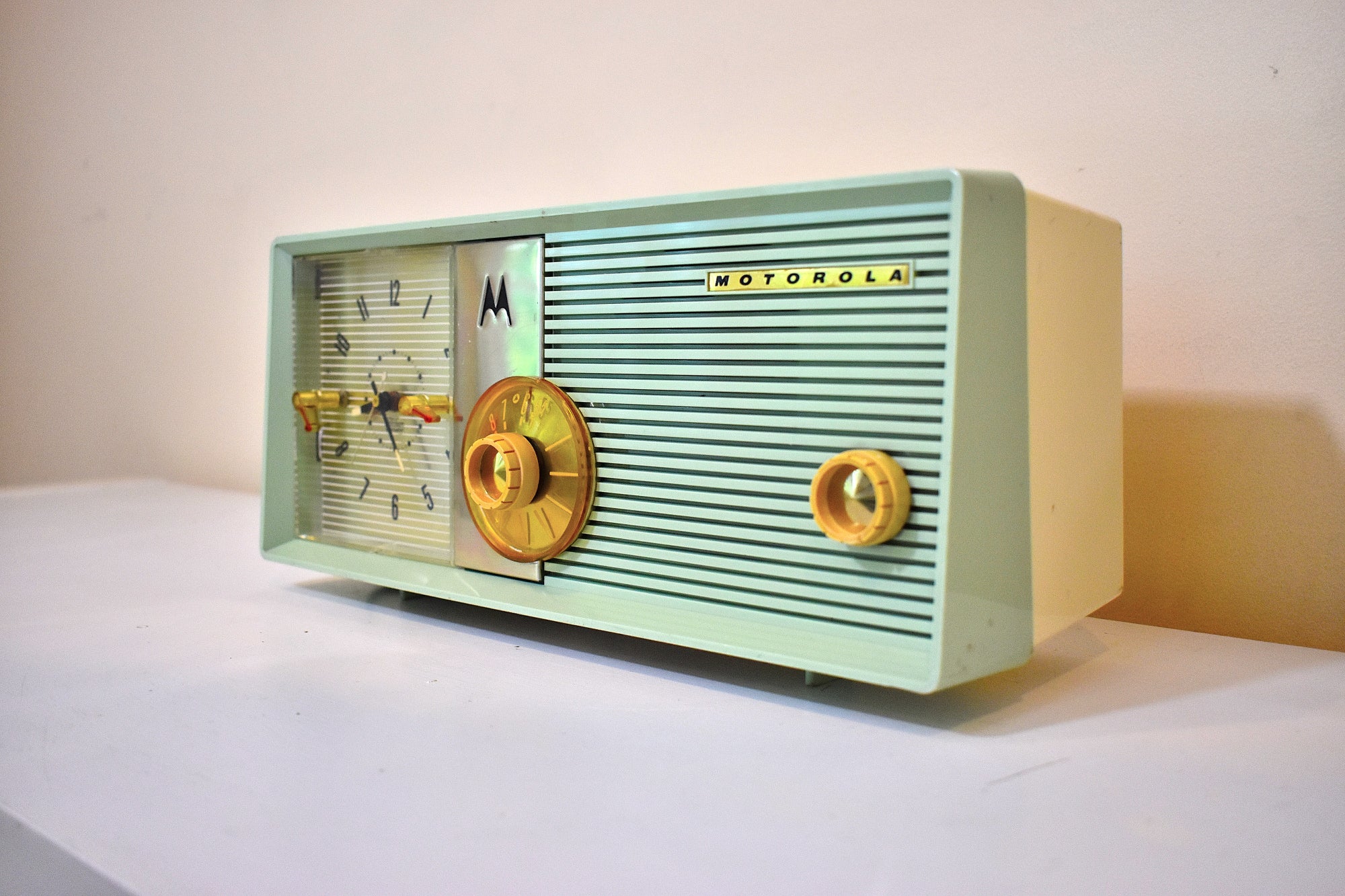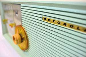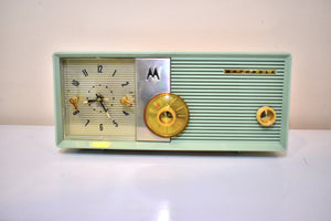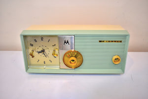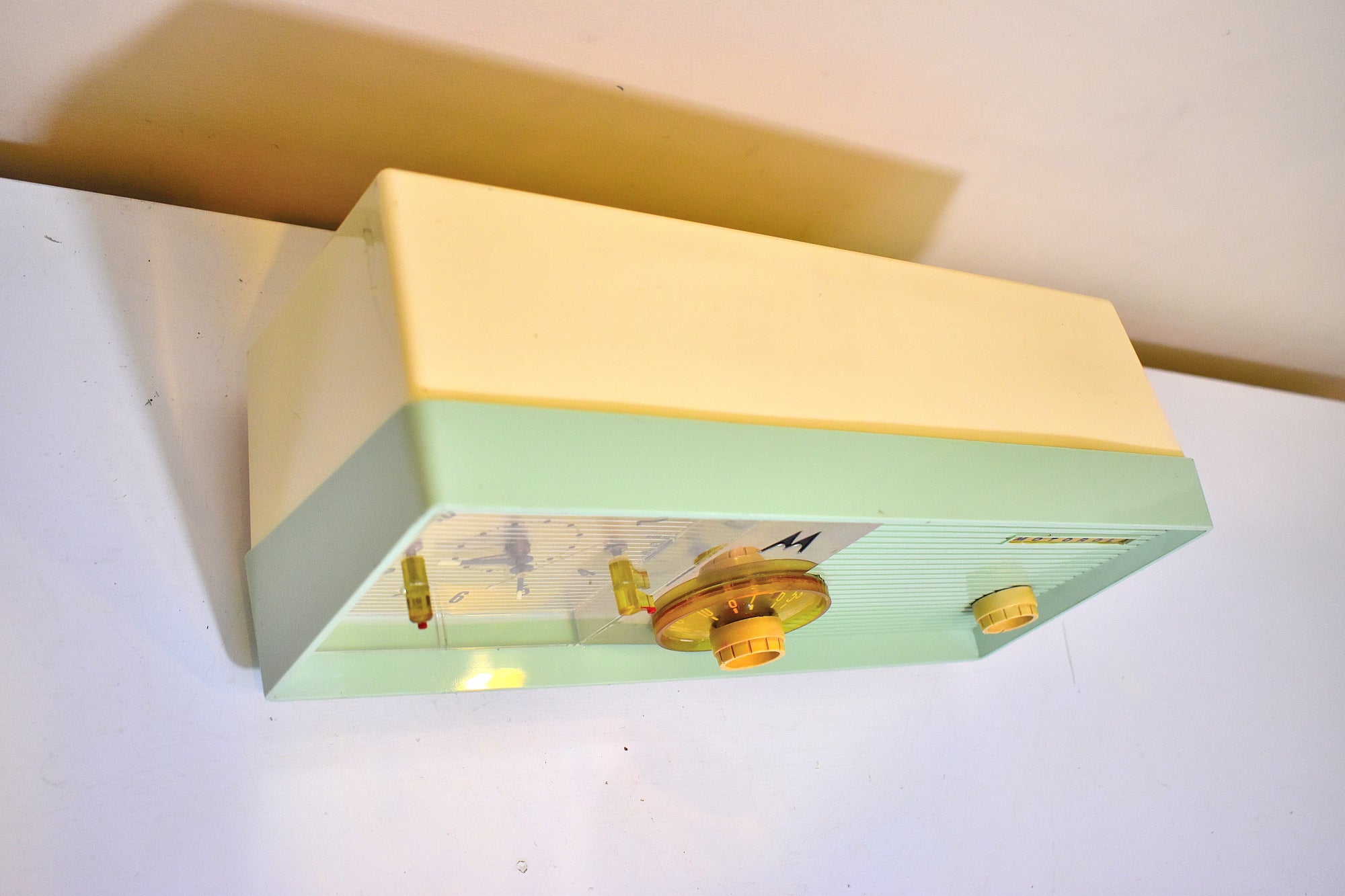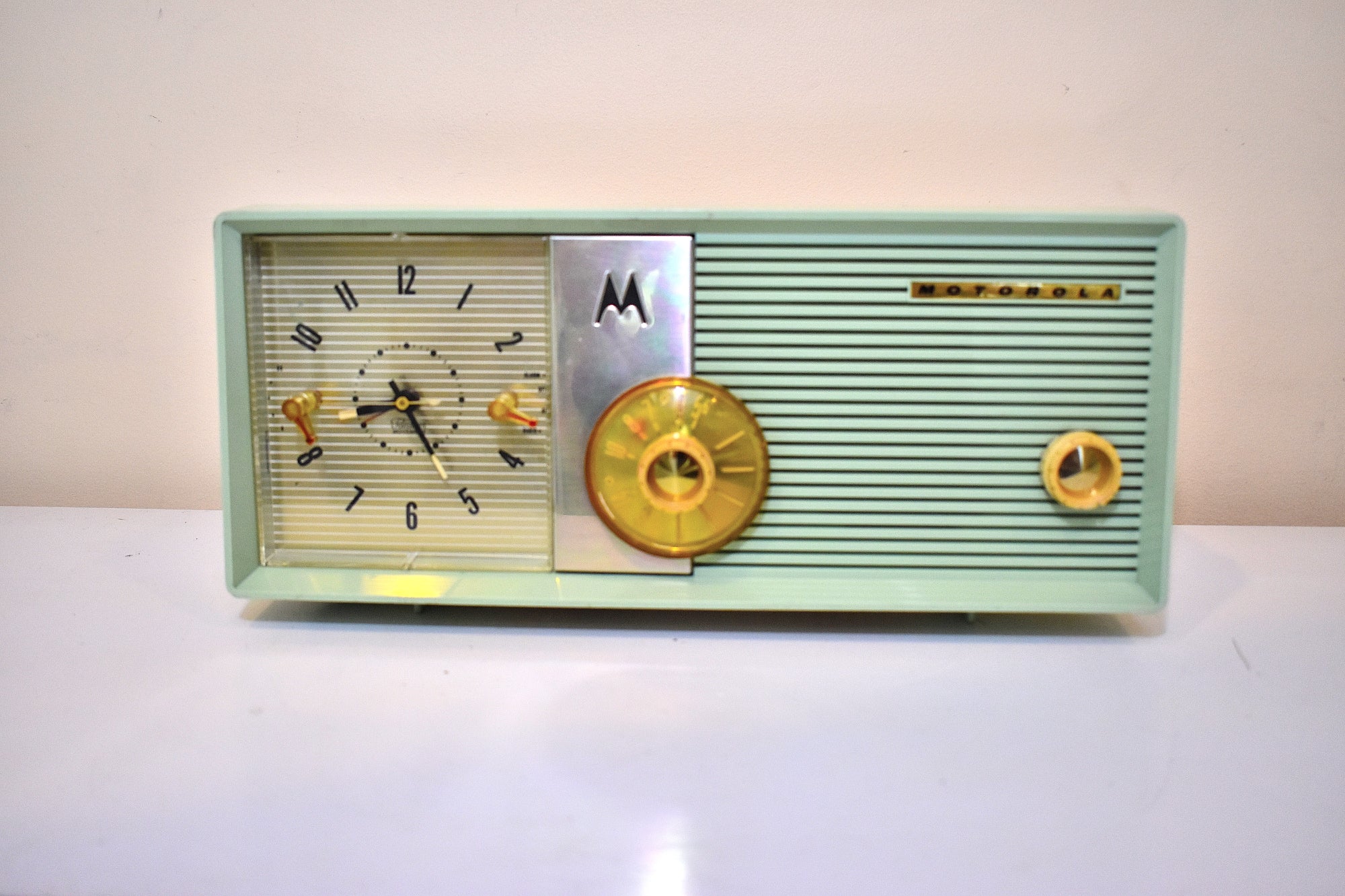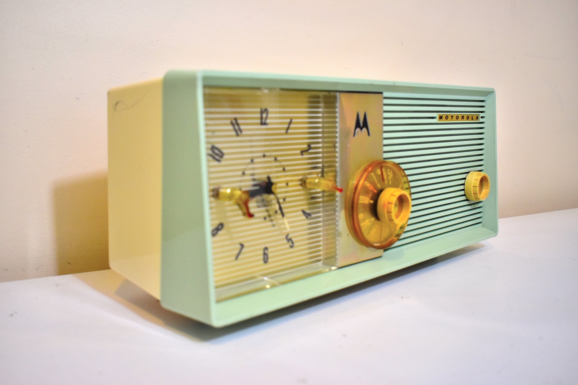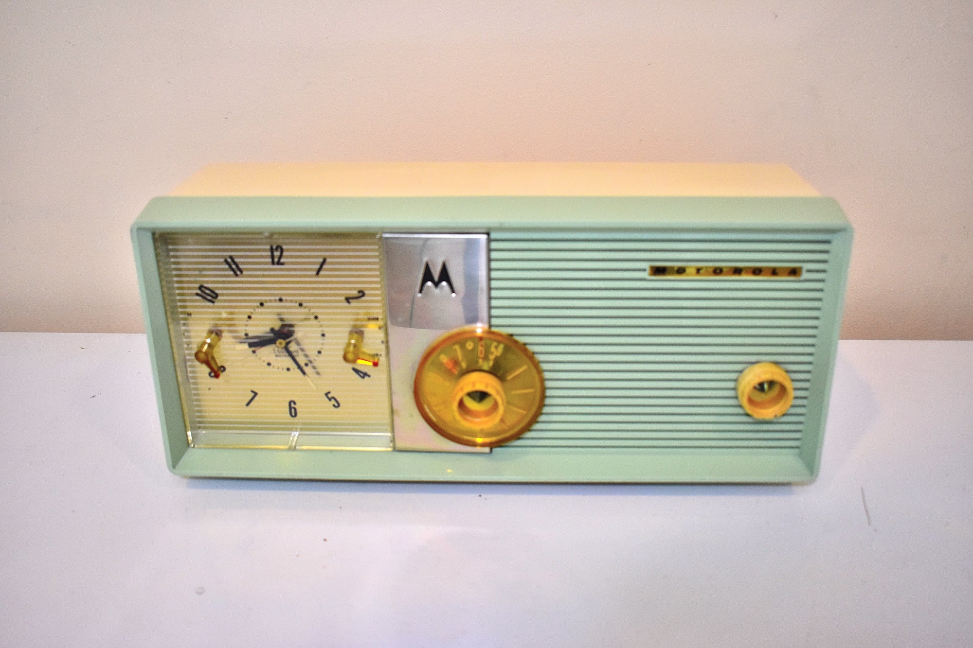 Cool Mint Green 1957 Motorola Model 5C15GW Vacuum Tube AM Clock Radio Rare Color Sounds Wonderful!
