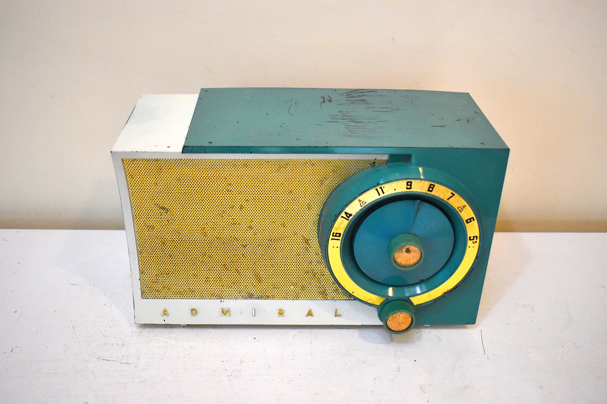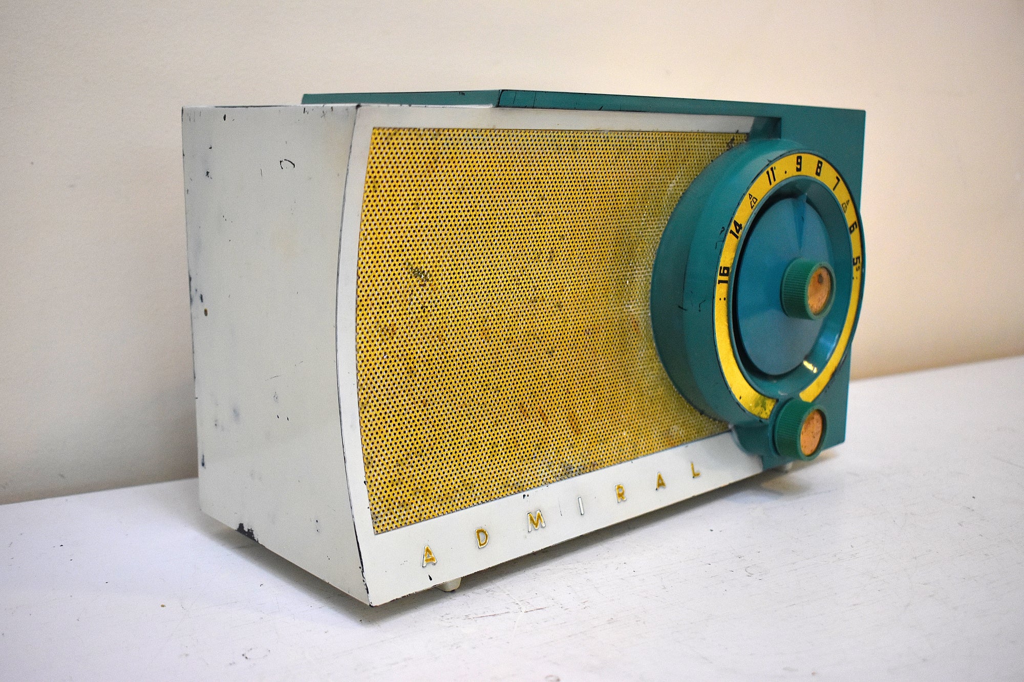 Seafoam White 1954 Admiral Model 5T36 Vacuum Tube Radio Big Speaker Sound! Rare Color Combo!