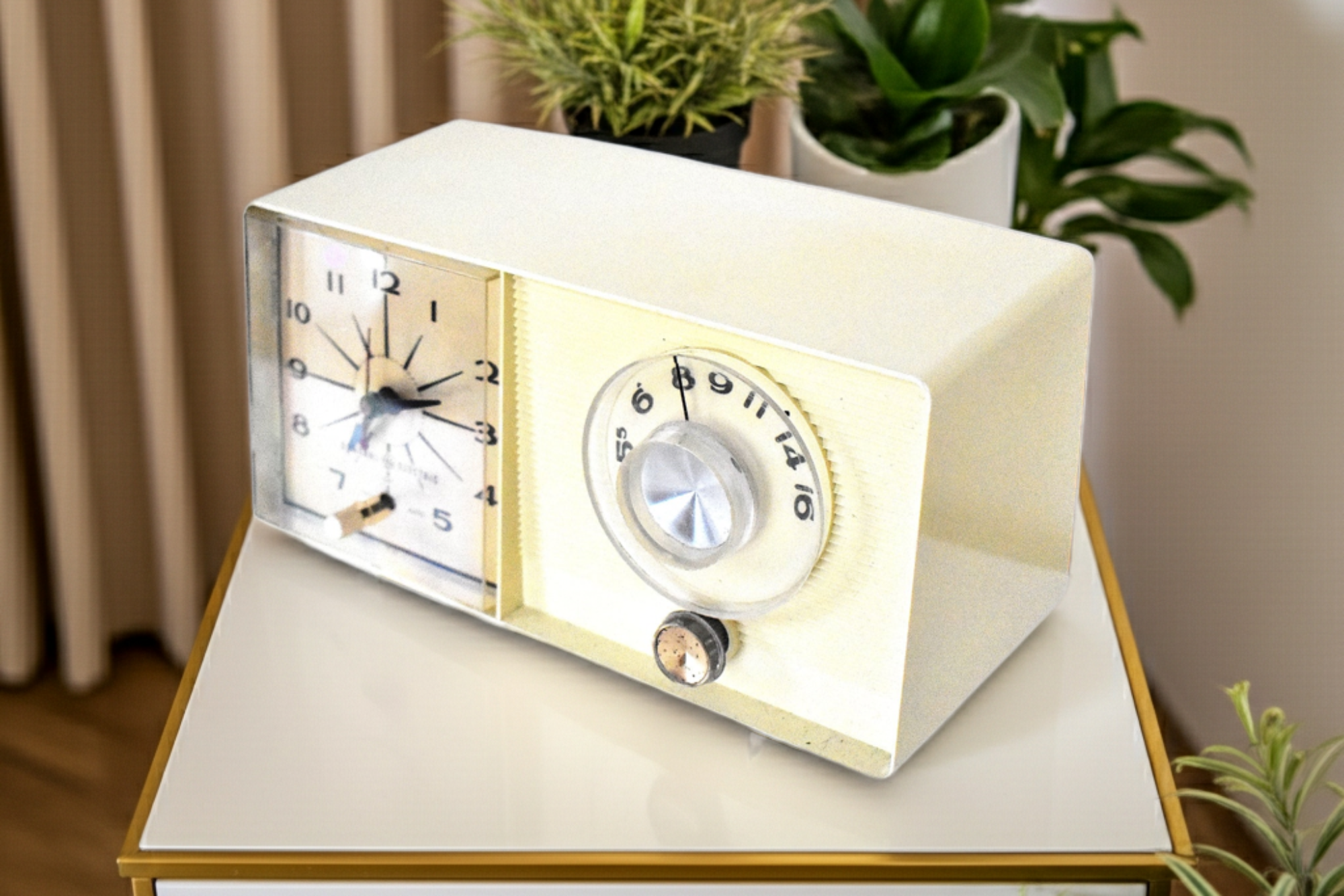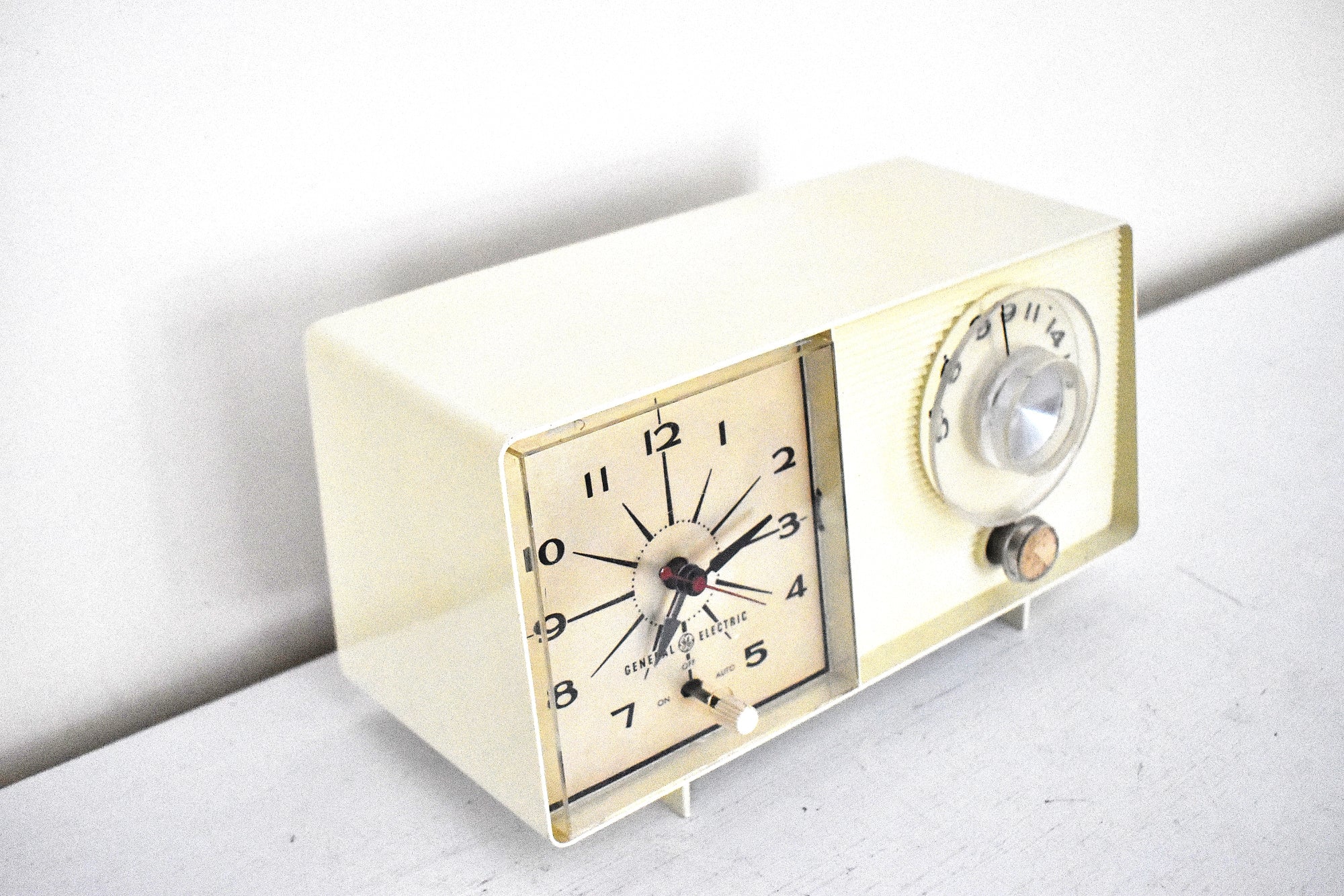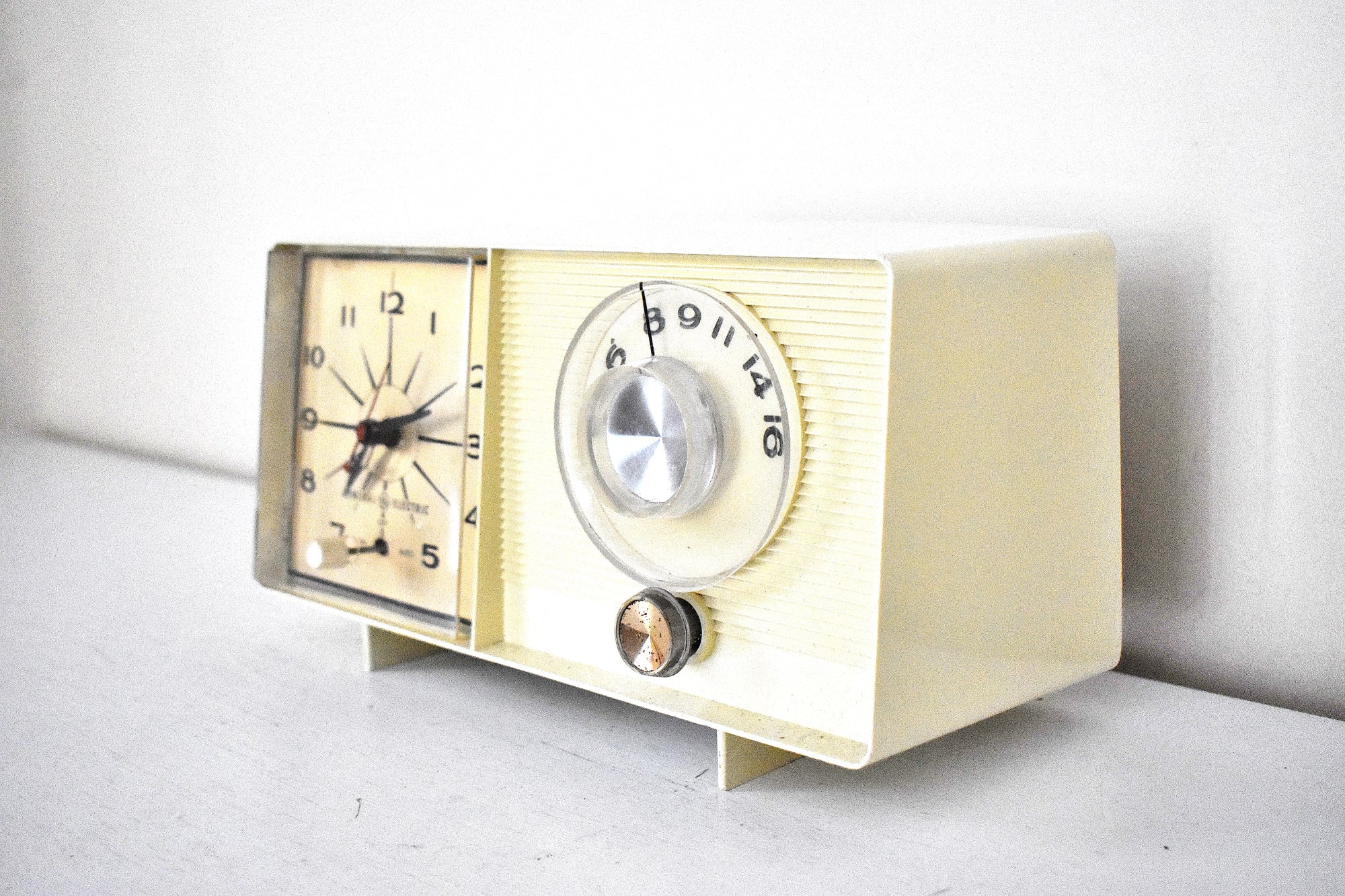 Beige Ivory 1964 General Electric Model C-404C Vacuum Tube AM Clock Radio Excellent Condition! Sounds Great!