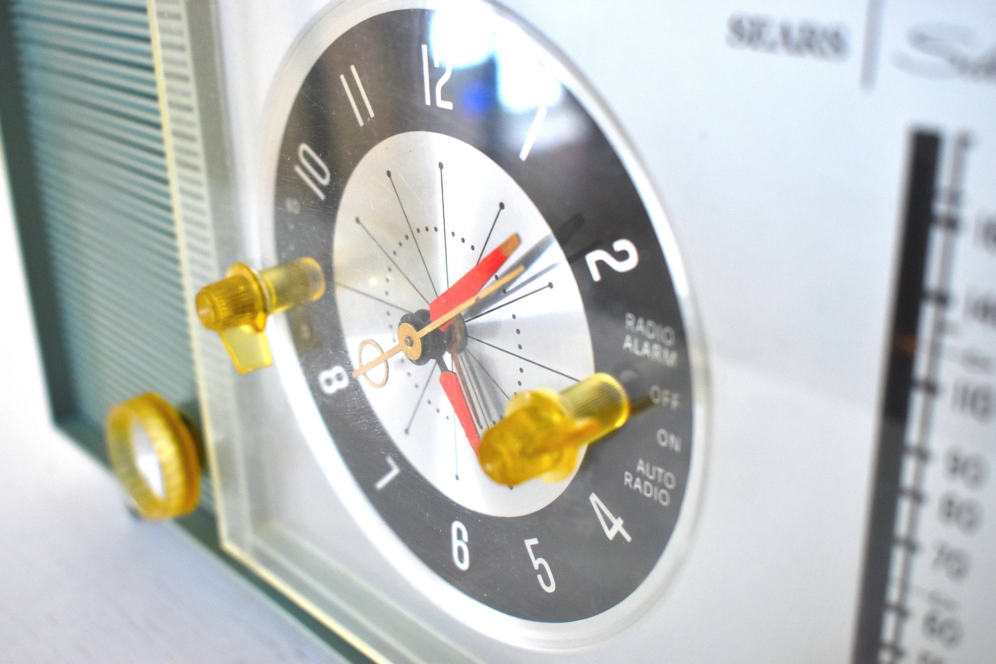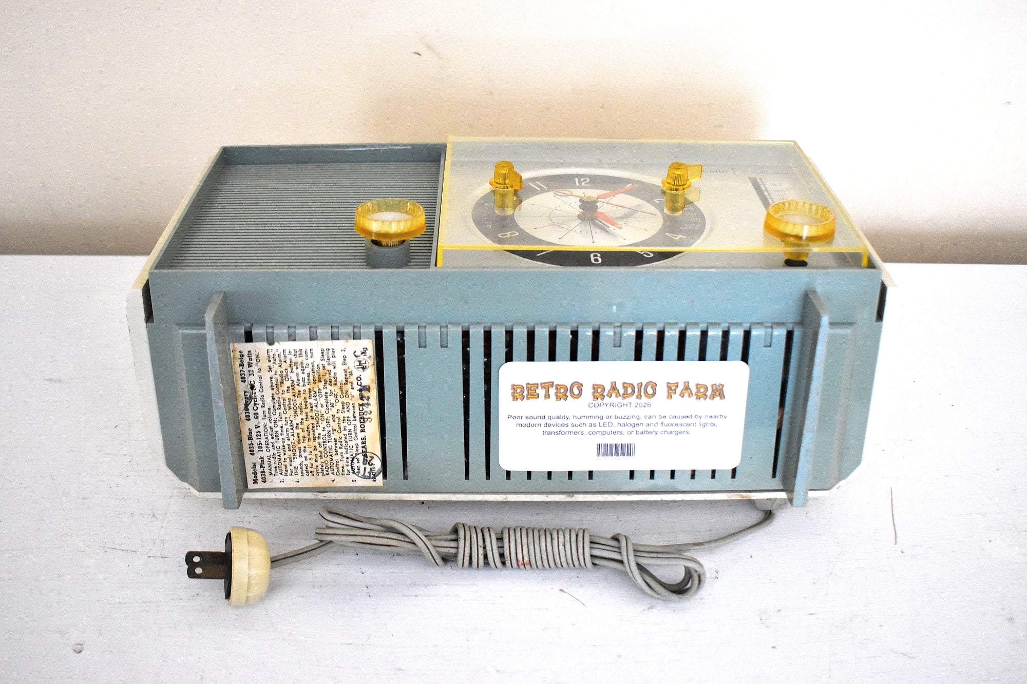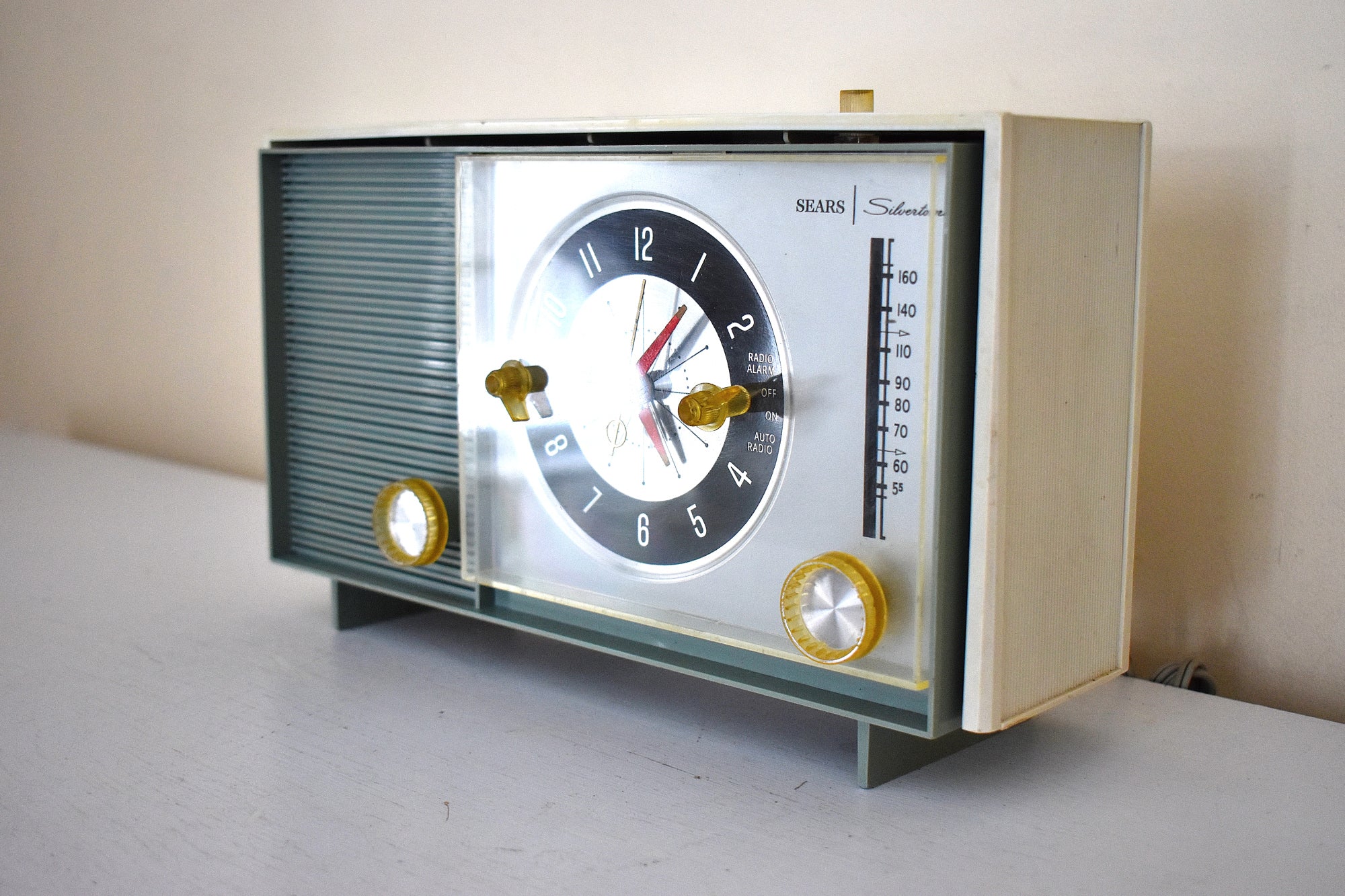 Monterey Blue 1964 Silvertone Model 4035 Vacuum Tube AM Clock Radio Excellent Condition and Great Sounding!