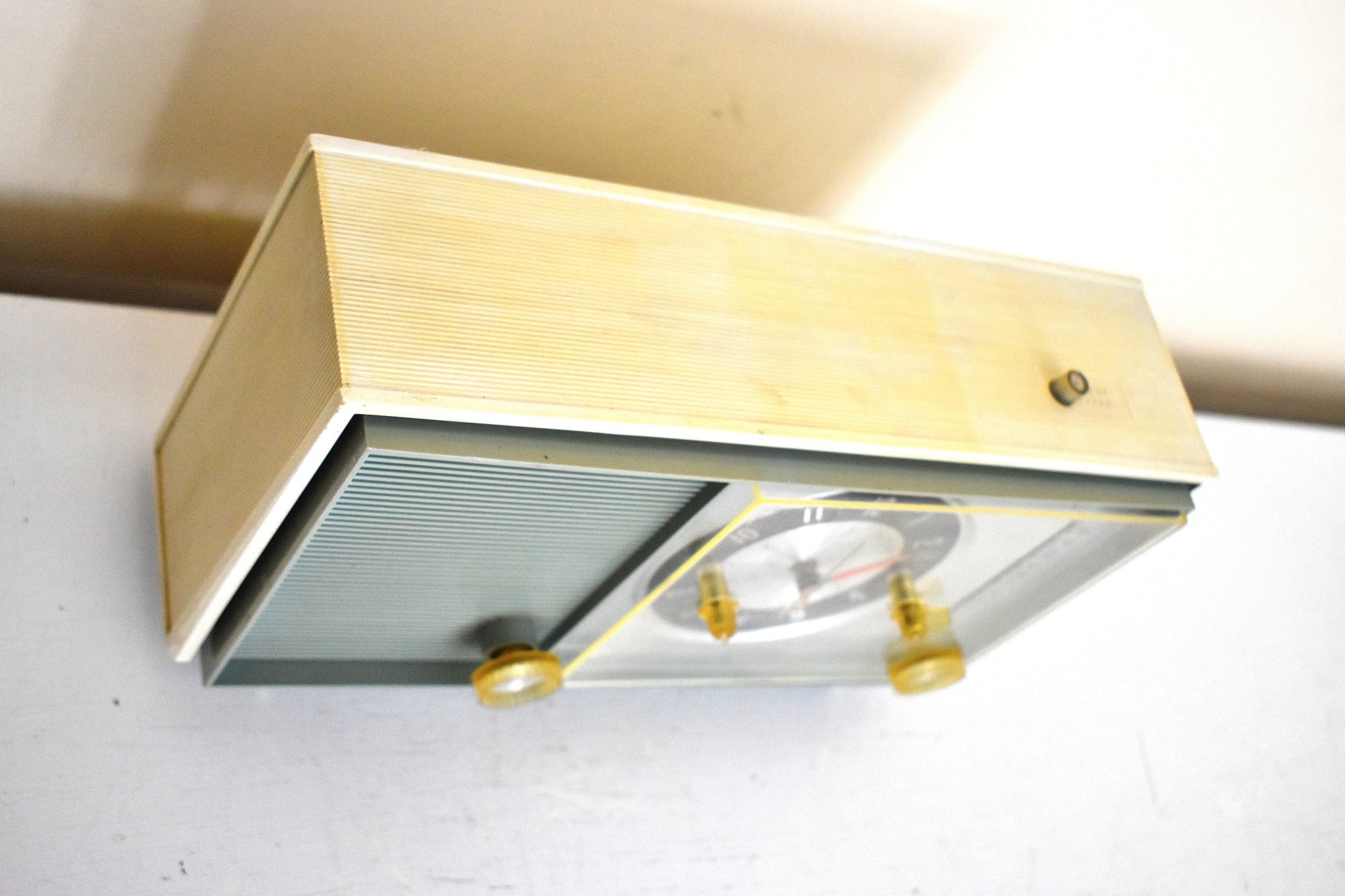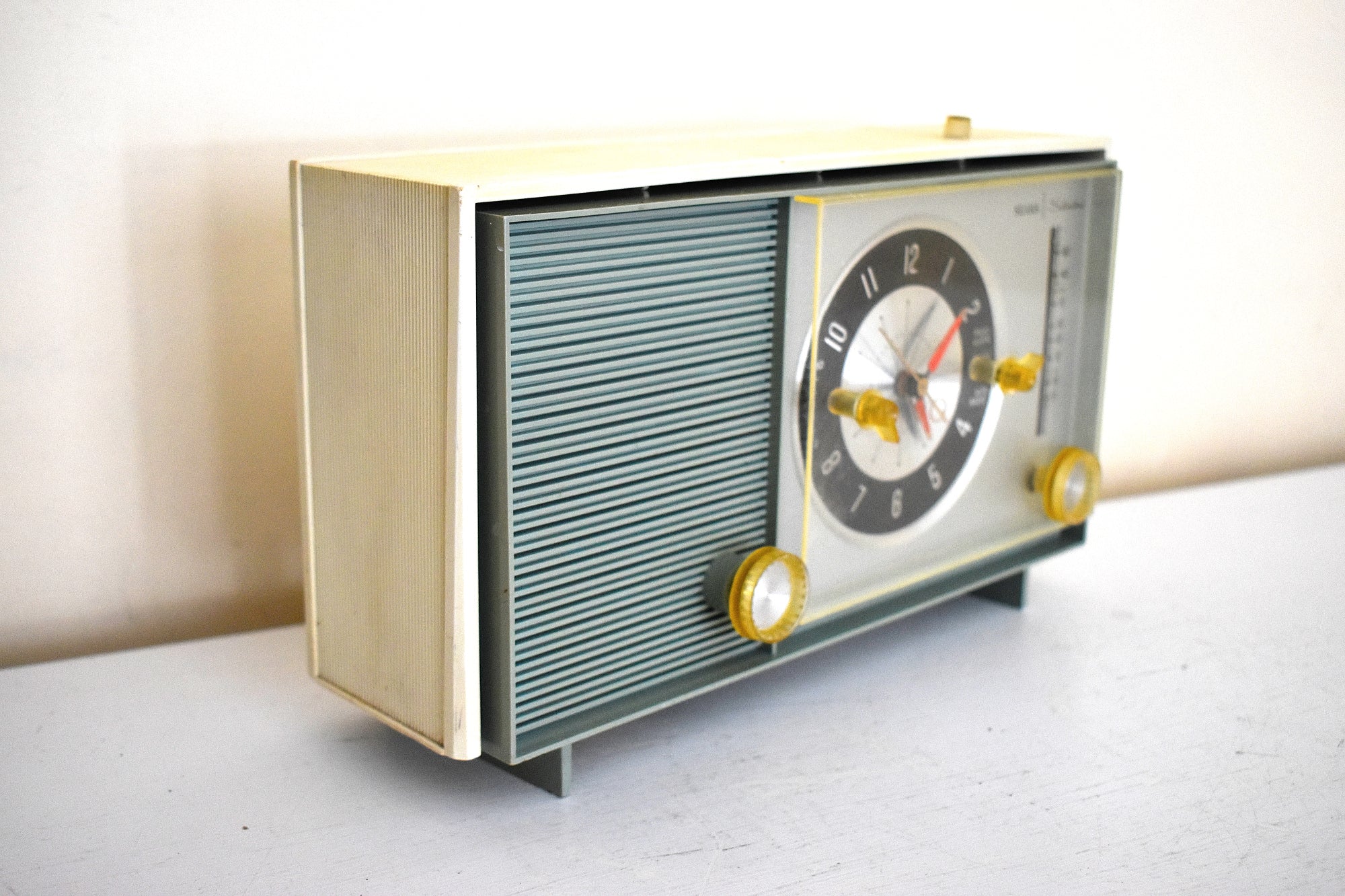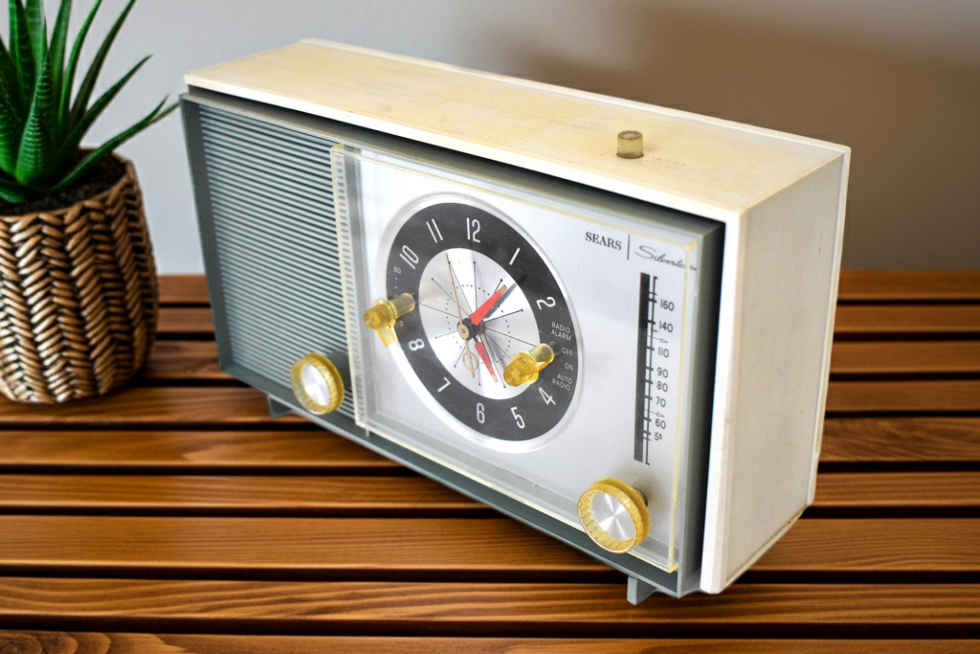Monterey Blue 1964 Silvertone Model 4035 Vacuum Tube AM Clock Radio Excellent Condition and Great Sounding!