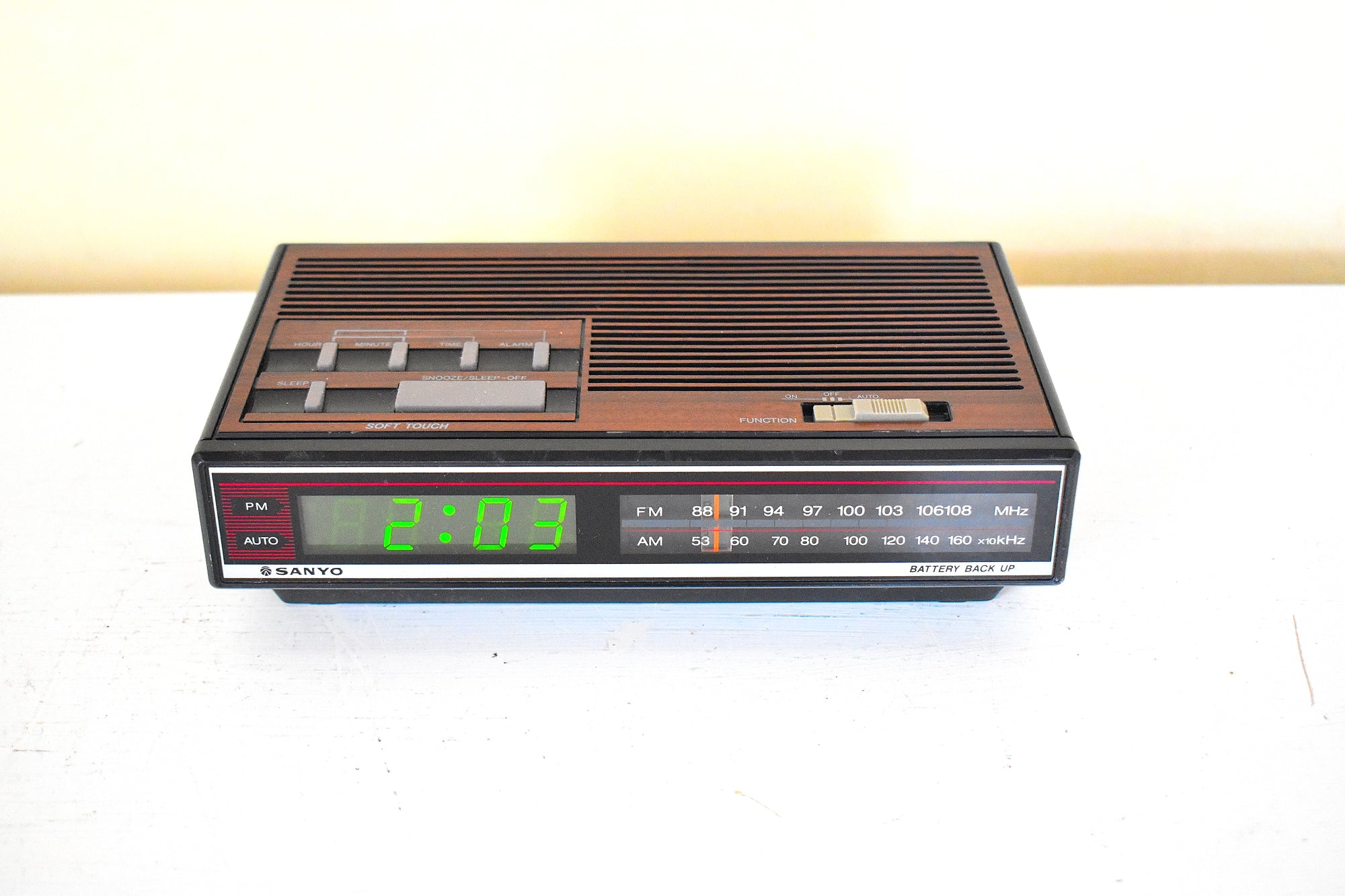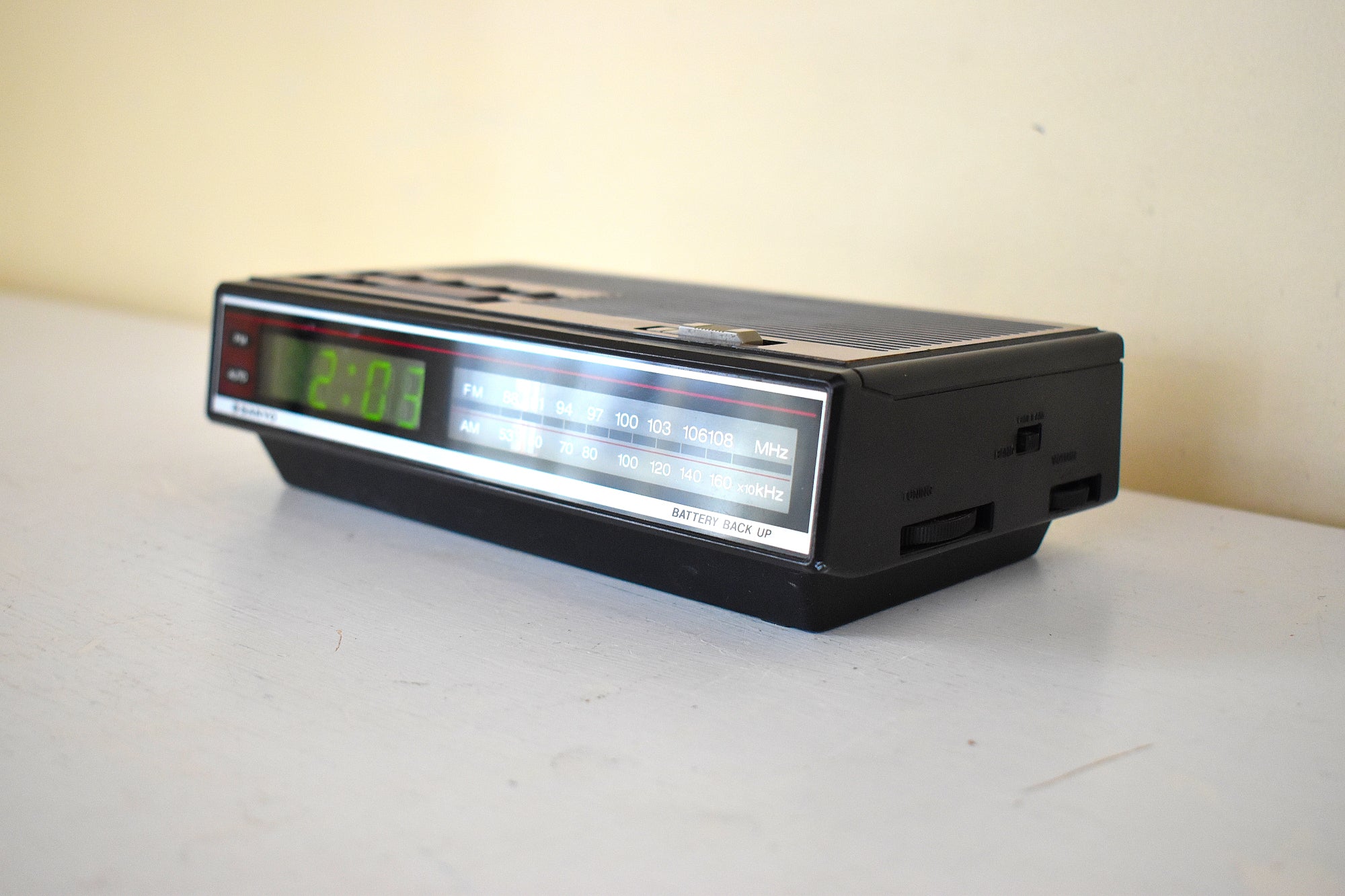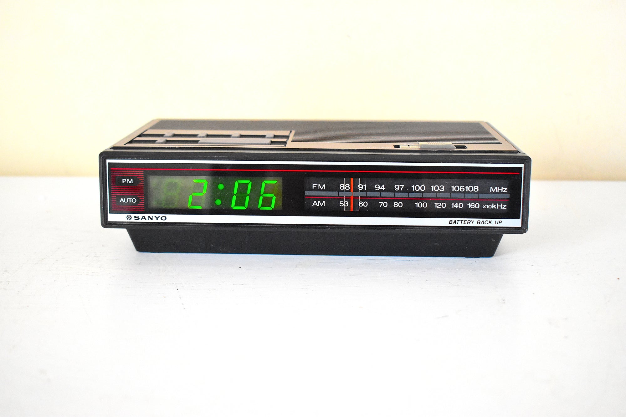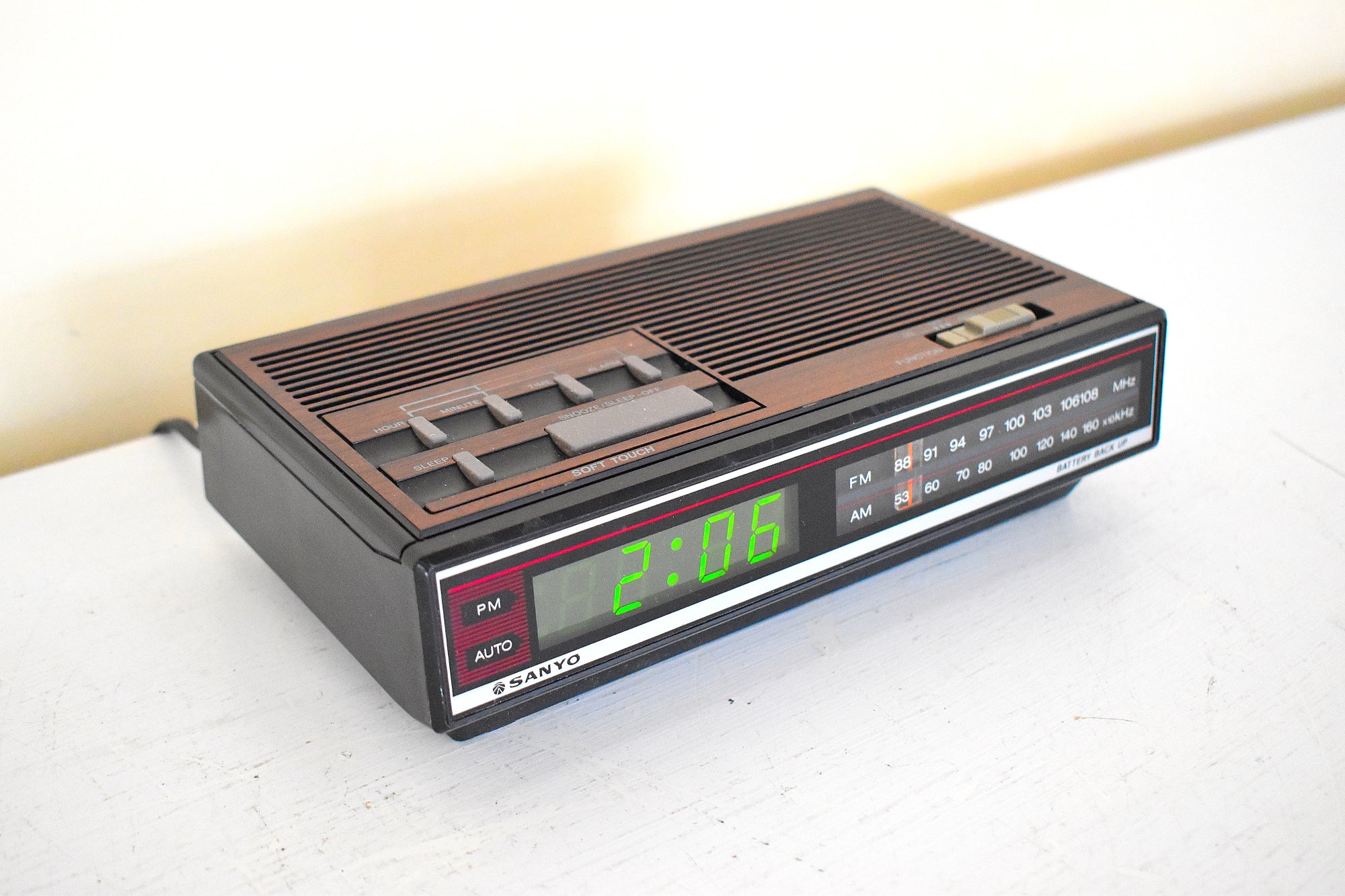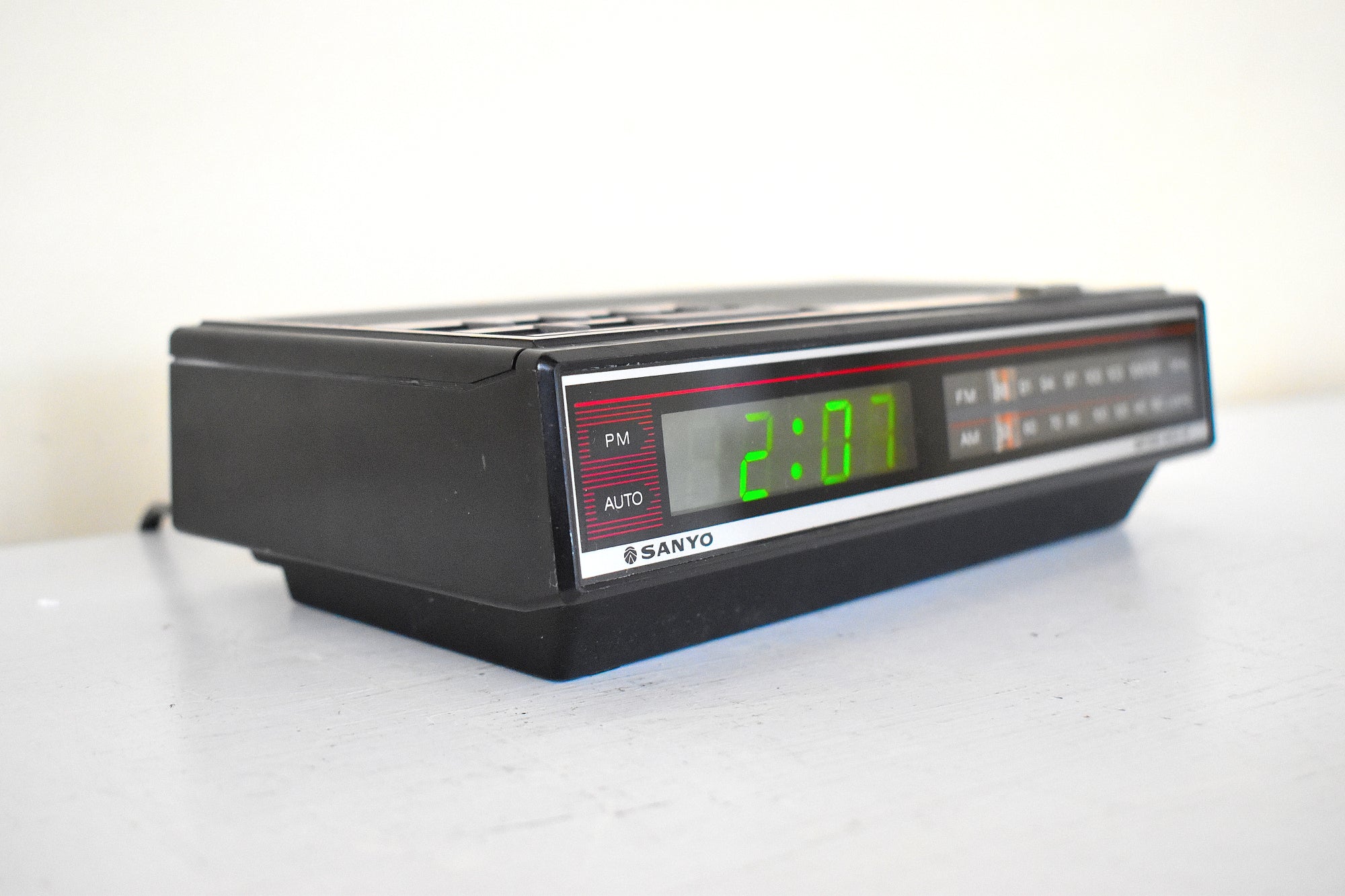 DESCRIPTION: This digital alarm clock AM FM radio was manufactured by Sanyo in 80s in excellent working an physical condition.
