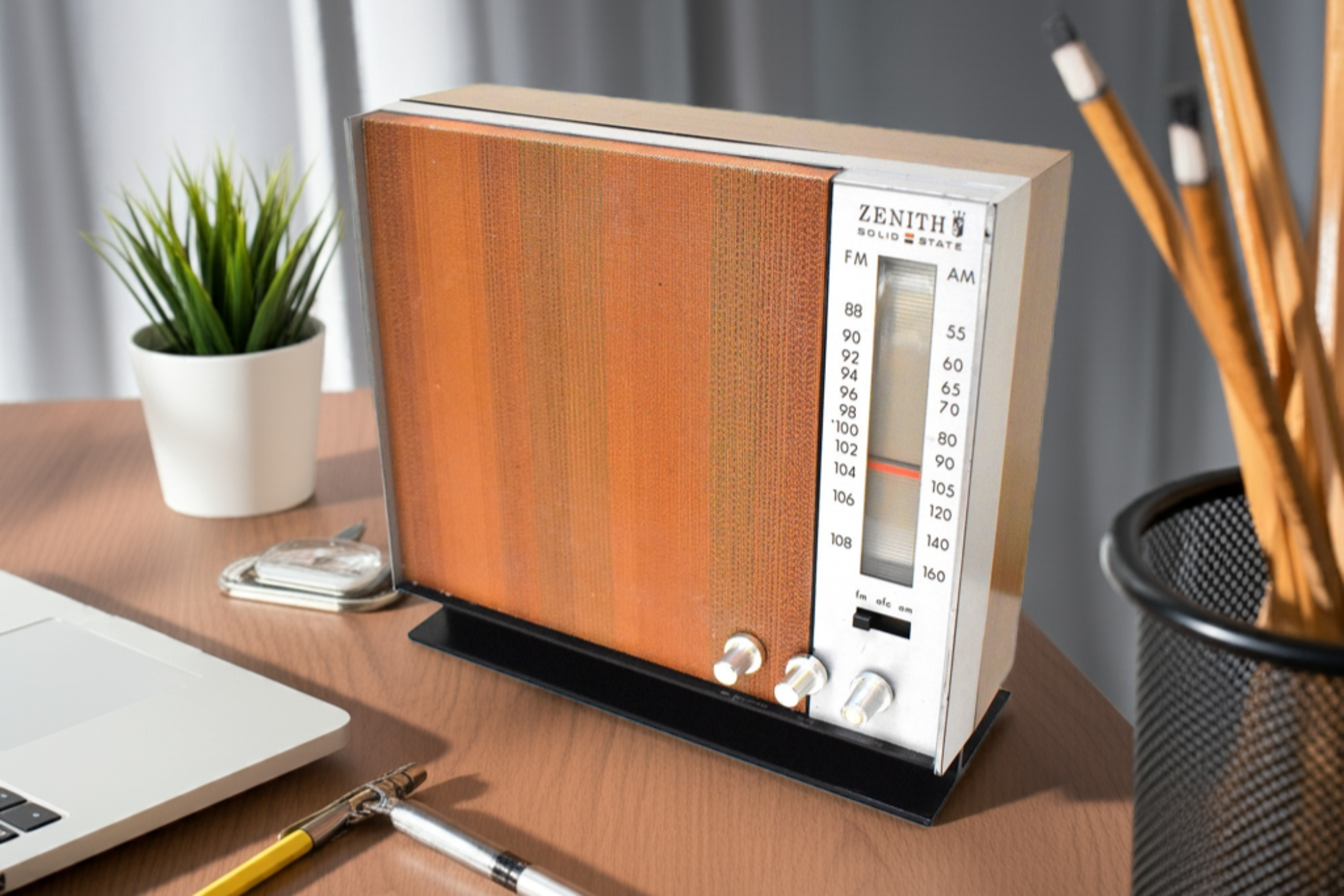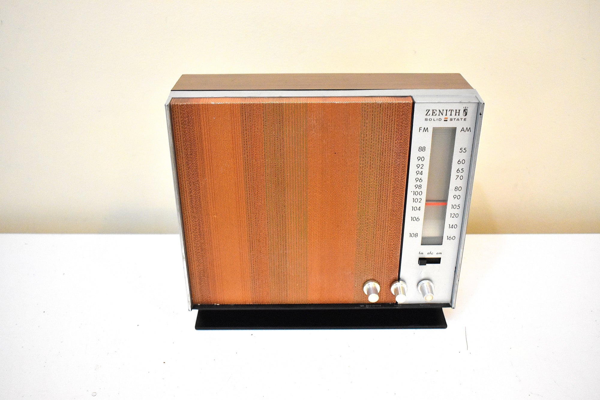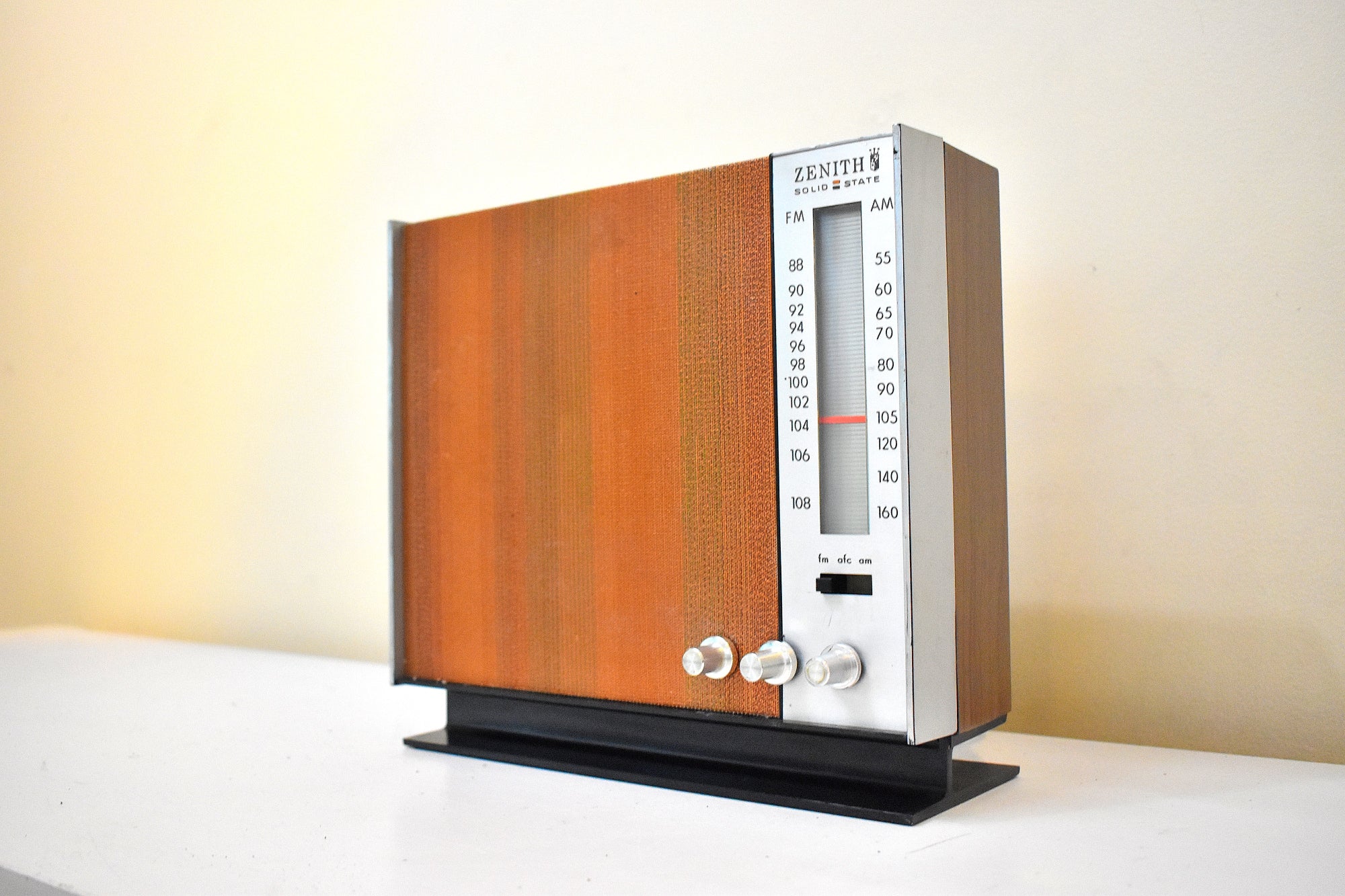 Woodgrain Panel 1965 Zenith Model A-418 Solid State Transistor AM FM Radio Excellent Condition and Great Sounding!