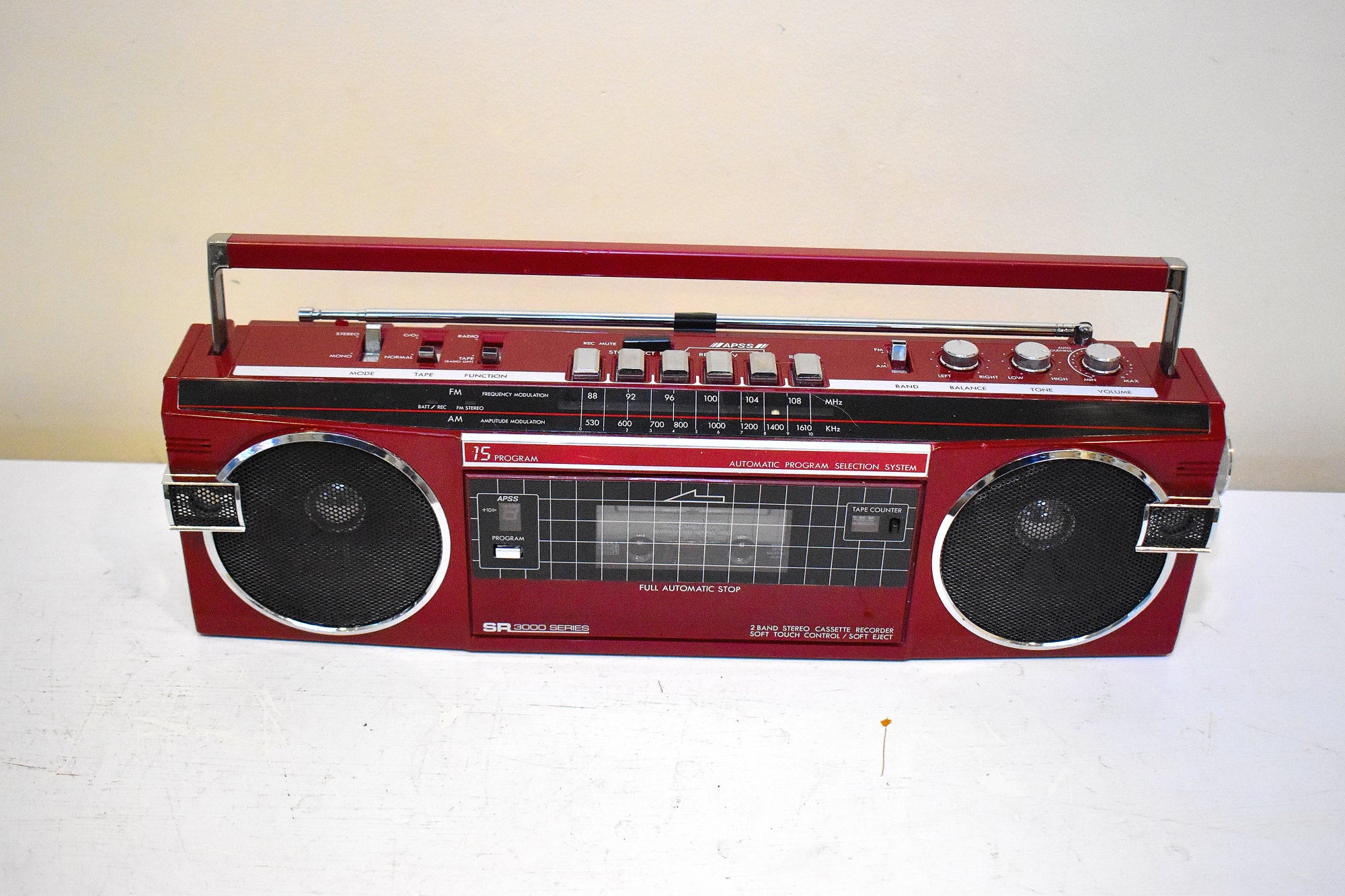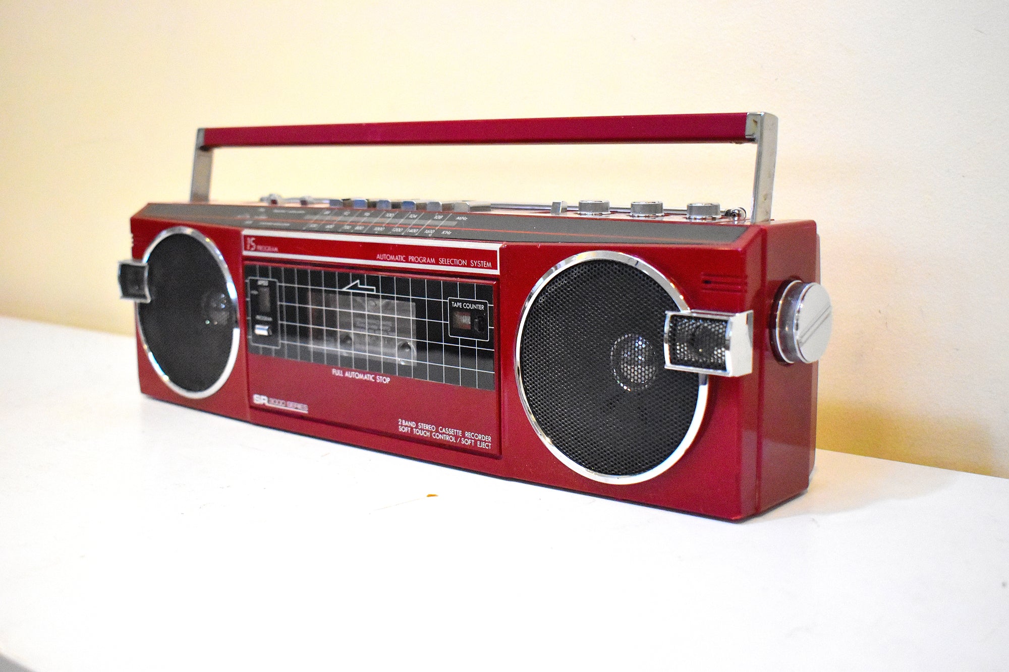 DESCRIPTION: This mini boombox AM FM radio and cassette player was sold by Sears Roebuck in the eighties in excellent working and physical condition