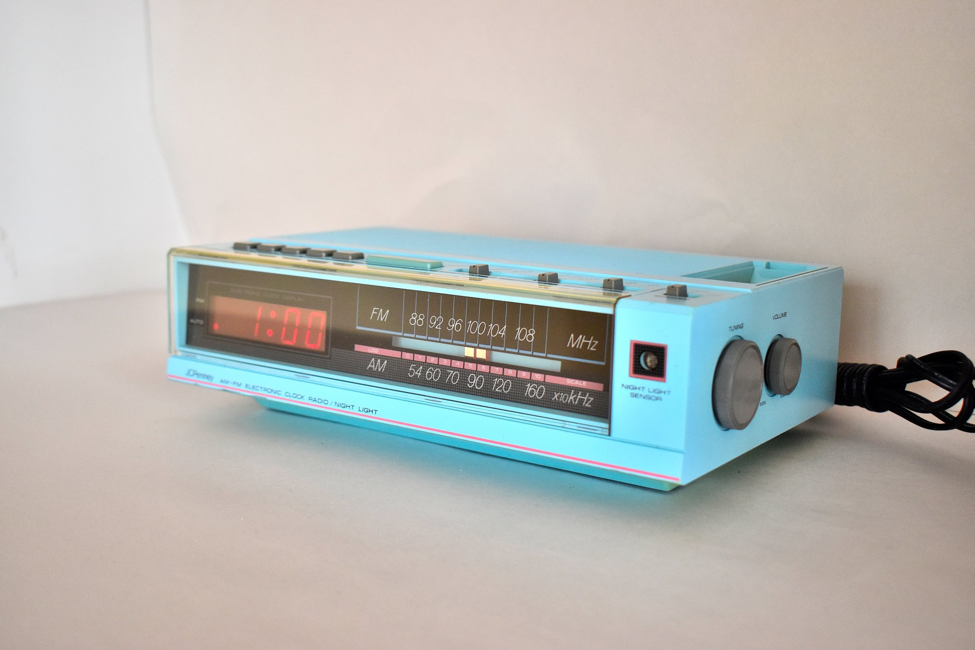 DESCRIPTION: This digital alarm clock AM FM radio was manufactured by JCPenney in 80s in excellent working an physical condition.