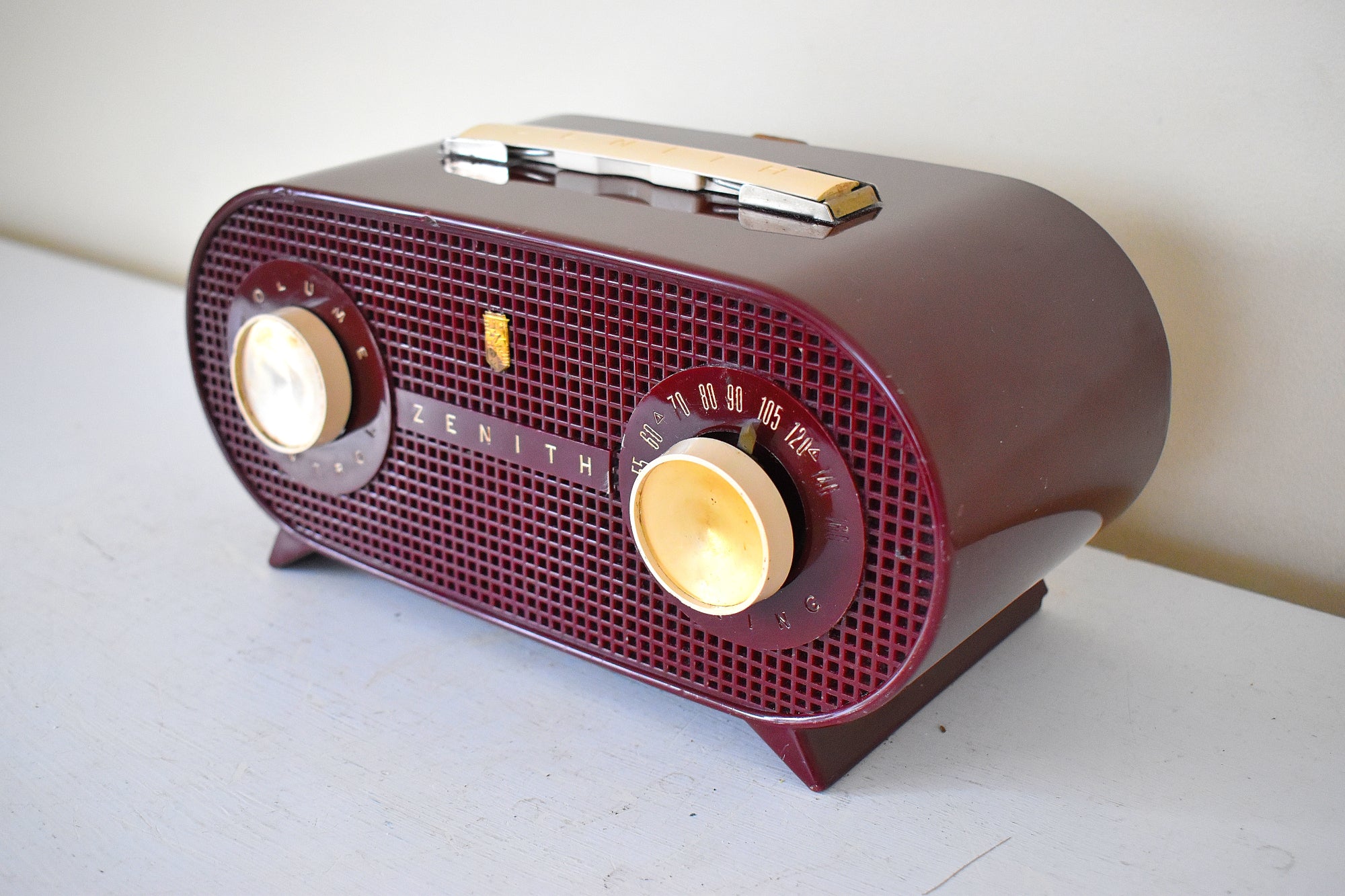 Oxblood Burgundy 1954 Zenith Model M510R Vacuum Tube AM Radio Oval Owl Eyes! Excellent Condition! Sounds Great!