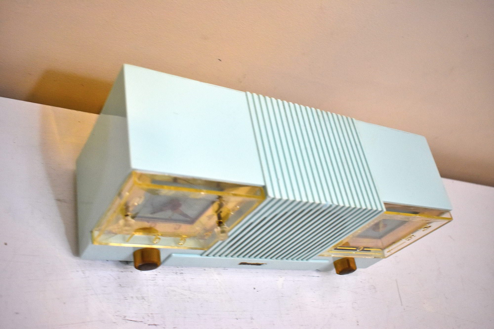 Celeste Blue Mid Century 1954 Firestone Model 4-A-127 Vacuum Tube AM Radio Cool Model Rare Color!