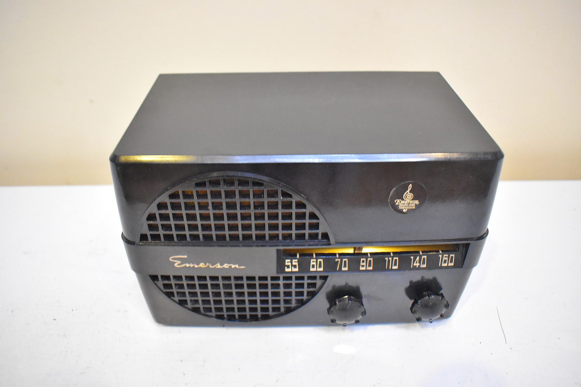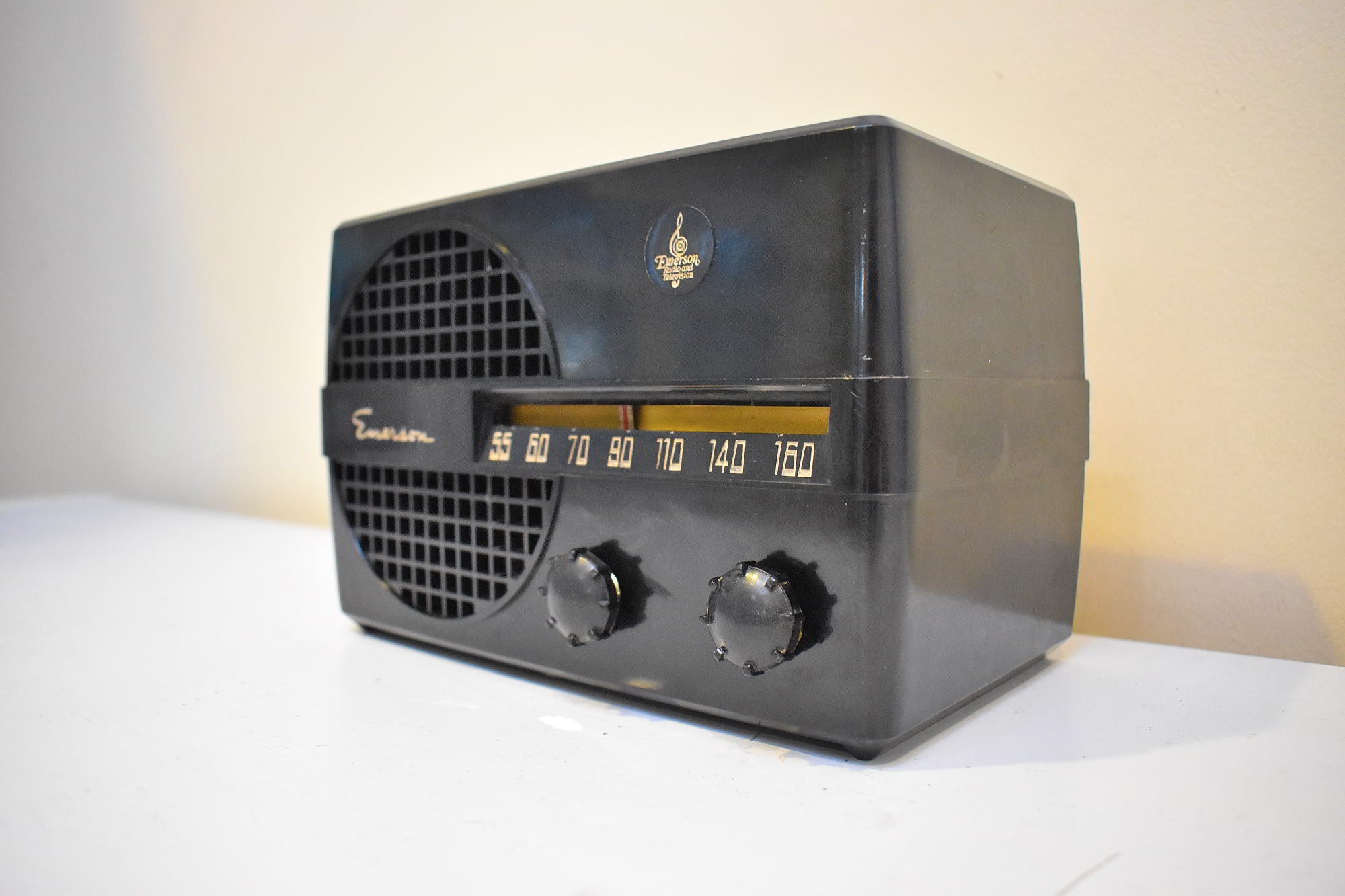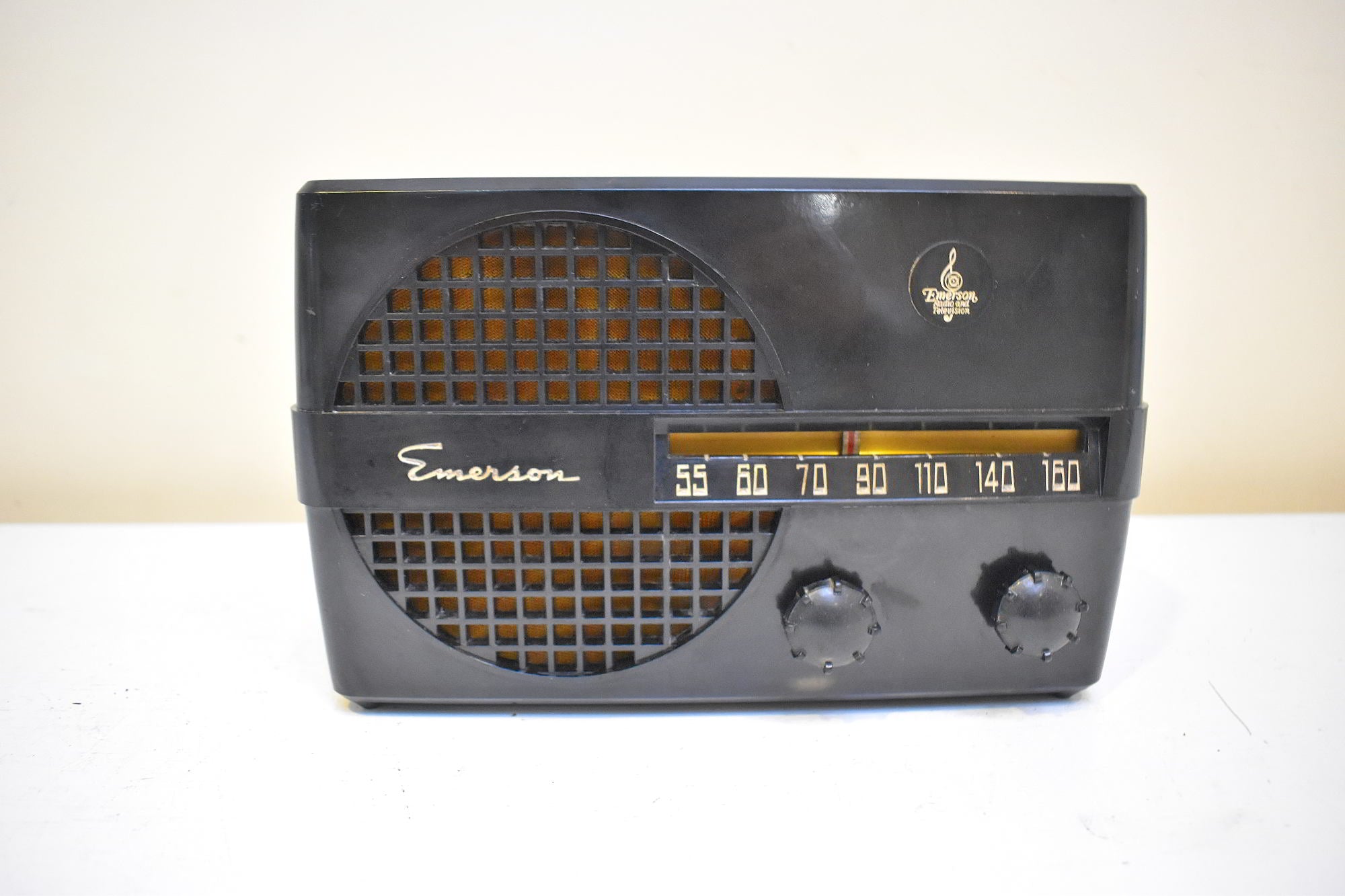 Jet Black 1950 Emerson Model 652 AM Vacuum Tube Radio Sounds Great! Excellent Condition!
