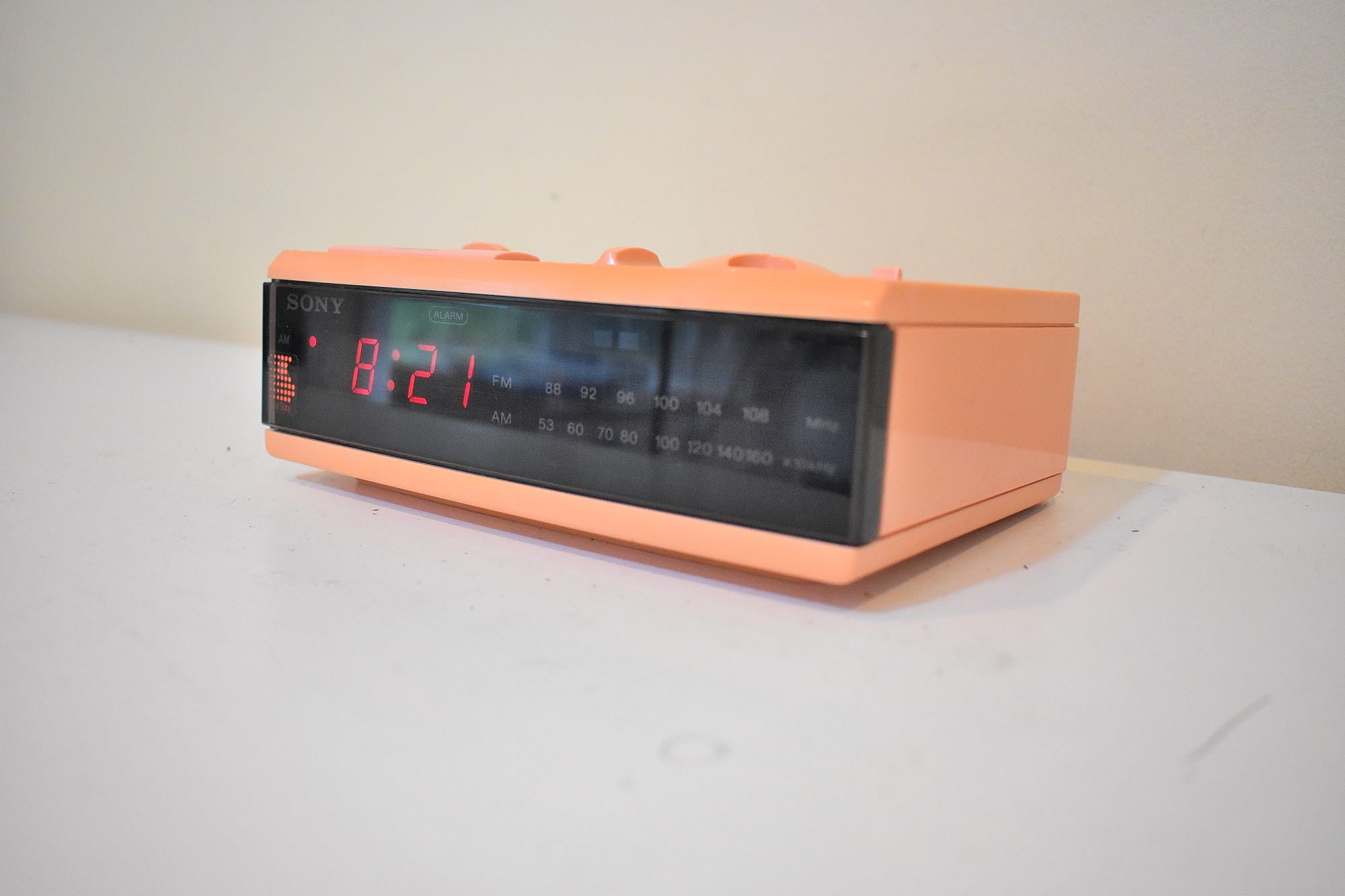 DESCRIPTION: This digital alarm clock AM FM radio was manufactured by Sony in 80s in excellent working an physical condition.