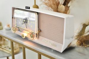 Marilyn Pink 1957 Motorola Model 57CC2 Vacuum Tube AM Clock Radio Rare Model and Color Sounds Fantastic!