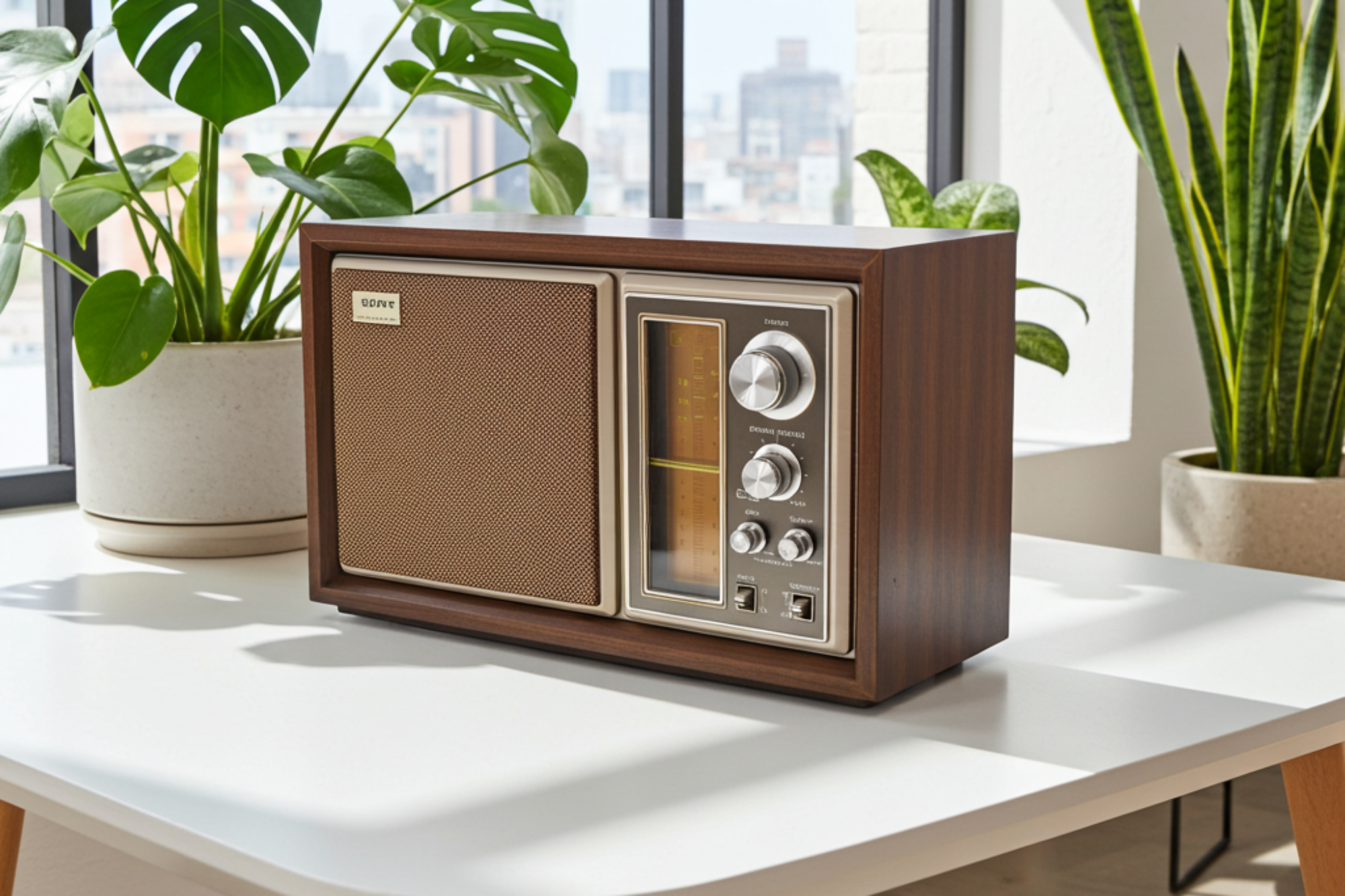 Product: antique radio, vintage radio, retro radio, vacuum tube radio, AM radio, art deco, mid-century product.