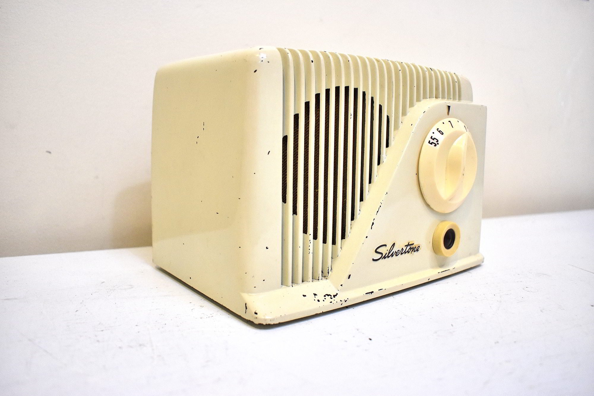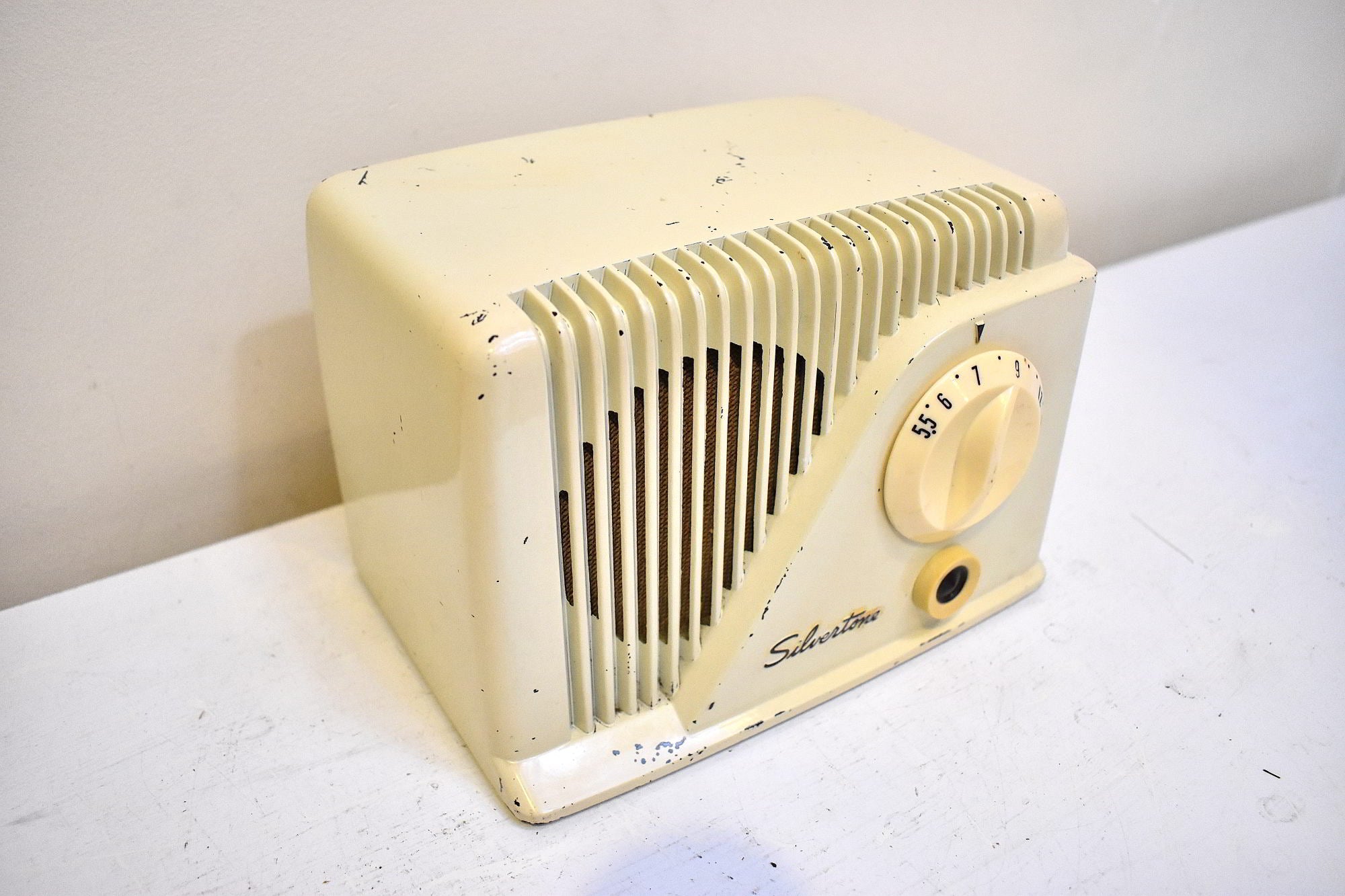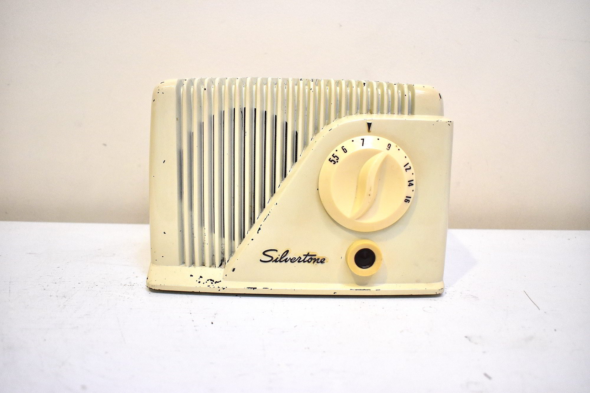 Antique Ivory Bakelite 1949 Silvertone Model 9001 Vacuum Tube AM Radio Sounds Great Excellent Condition!