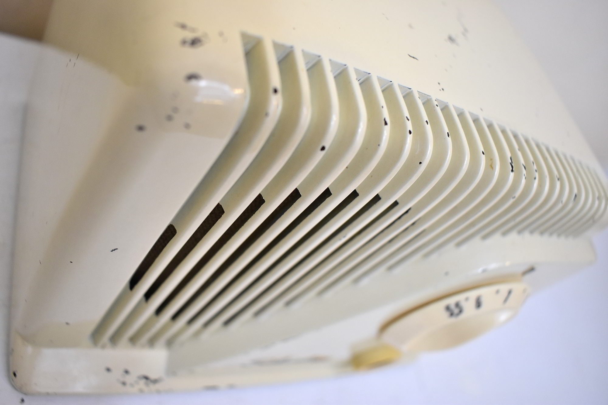 ノブ: オリジナルの大きな工場出荷時の透明なプラスチック製チューニングノブは無傷で、取り付けポストが壊れることなくしっかりと取り付けられています。チューニングダイヤルは滑りやベタつきもなく正常に機能します。ボリュームオン/オフスイッチはオリジナルでしっかりと取り付けられています。