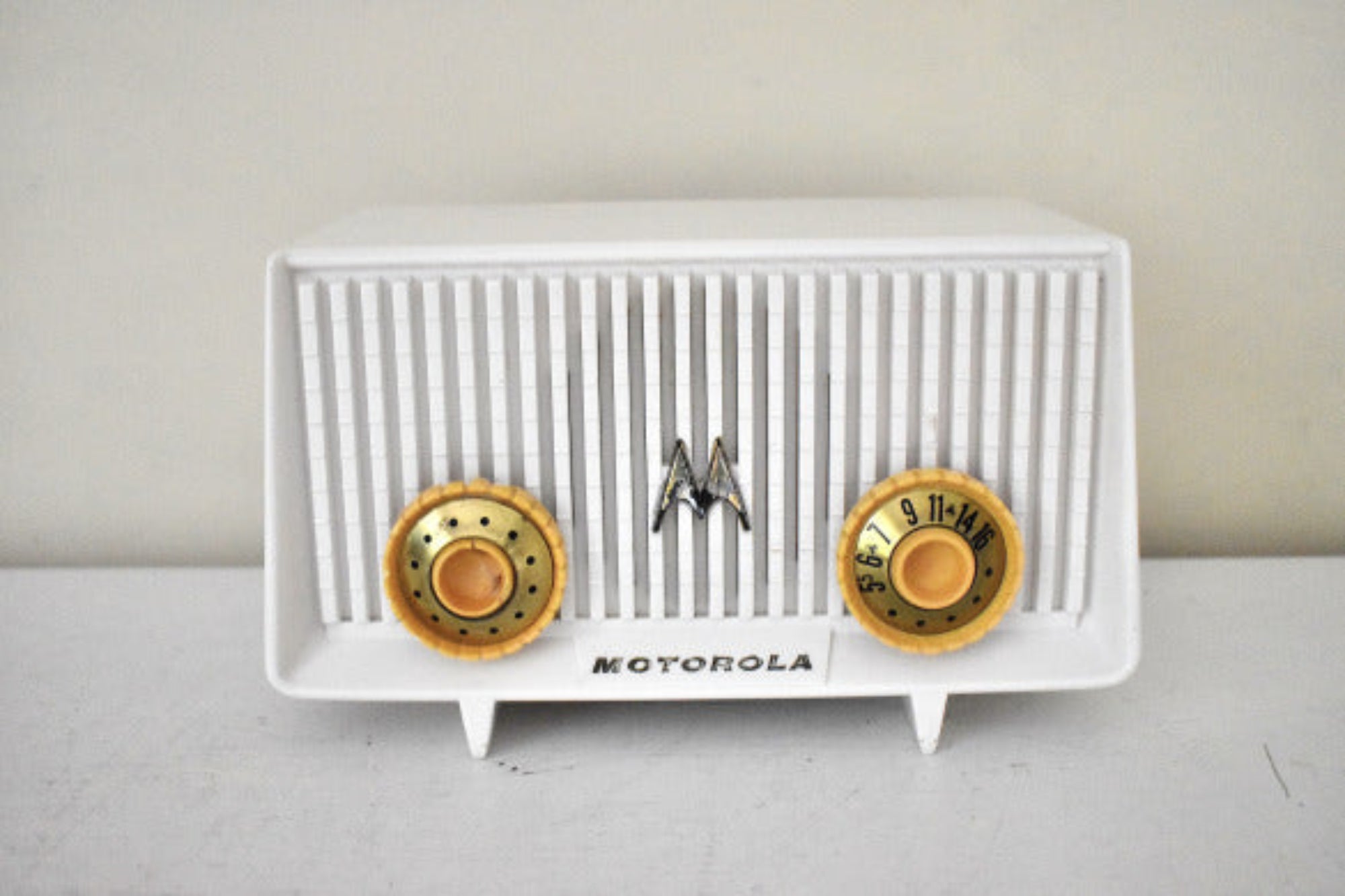 説明: 古いラジオを目玉にしたいと思っているなら、このラジオがそのかゆみを解消します。 1955 年に Arvin によって製造された卓上真空管 AM ラジオ。動作および物理的状態は良好です。これは、Arvin の最も望ましいデザインの 1 つです。記憶に残るメルセデスベンツのようなスターで、すぐに認識できる象徴的なモデルです。アービンとメルセデス・ベンツの間には何の関係もありません。類似性は偶然です。歴史はリスクを取ることに報いる傾向があり、このラジオのデザインはその一例です。実際にダークカラーで最もよく見えるラジオは数少ないものの 1 つです。 S550セダンみたいな。