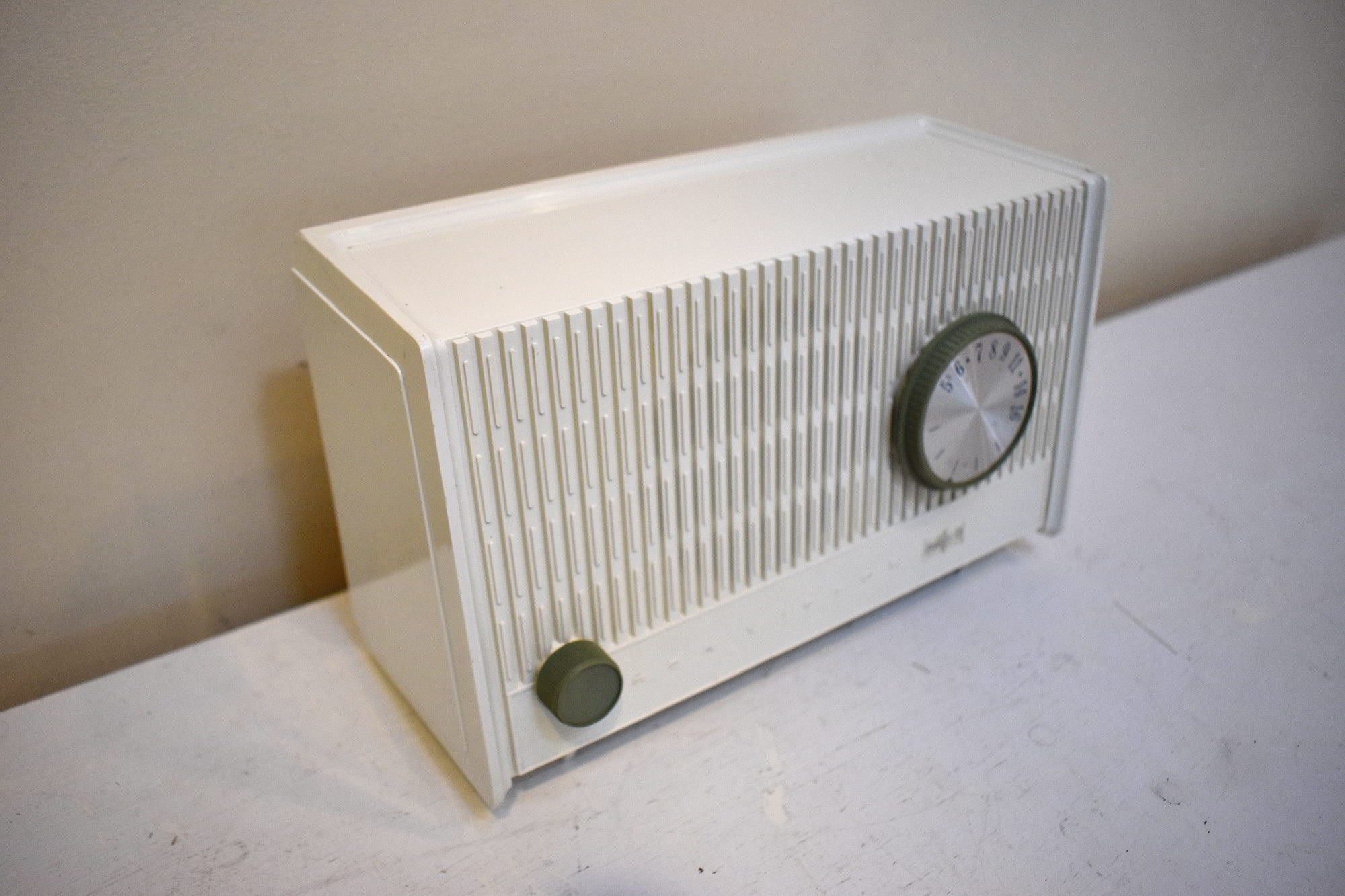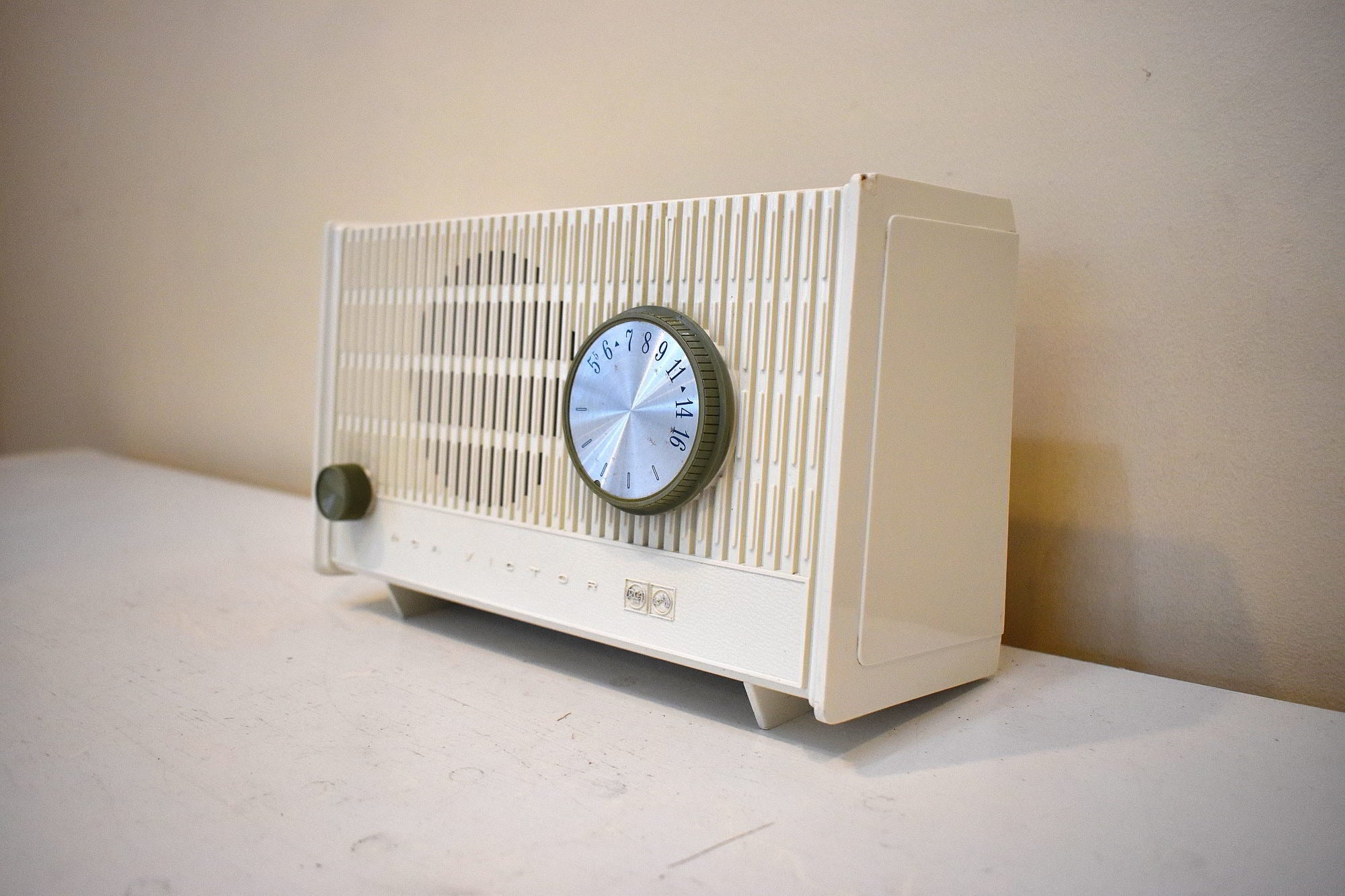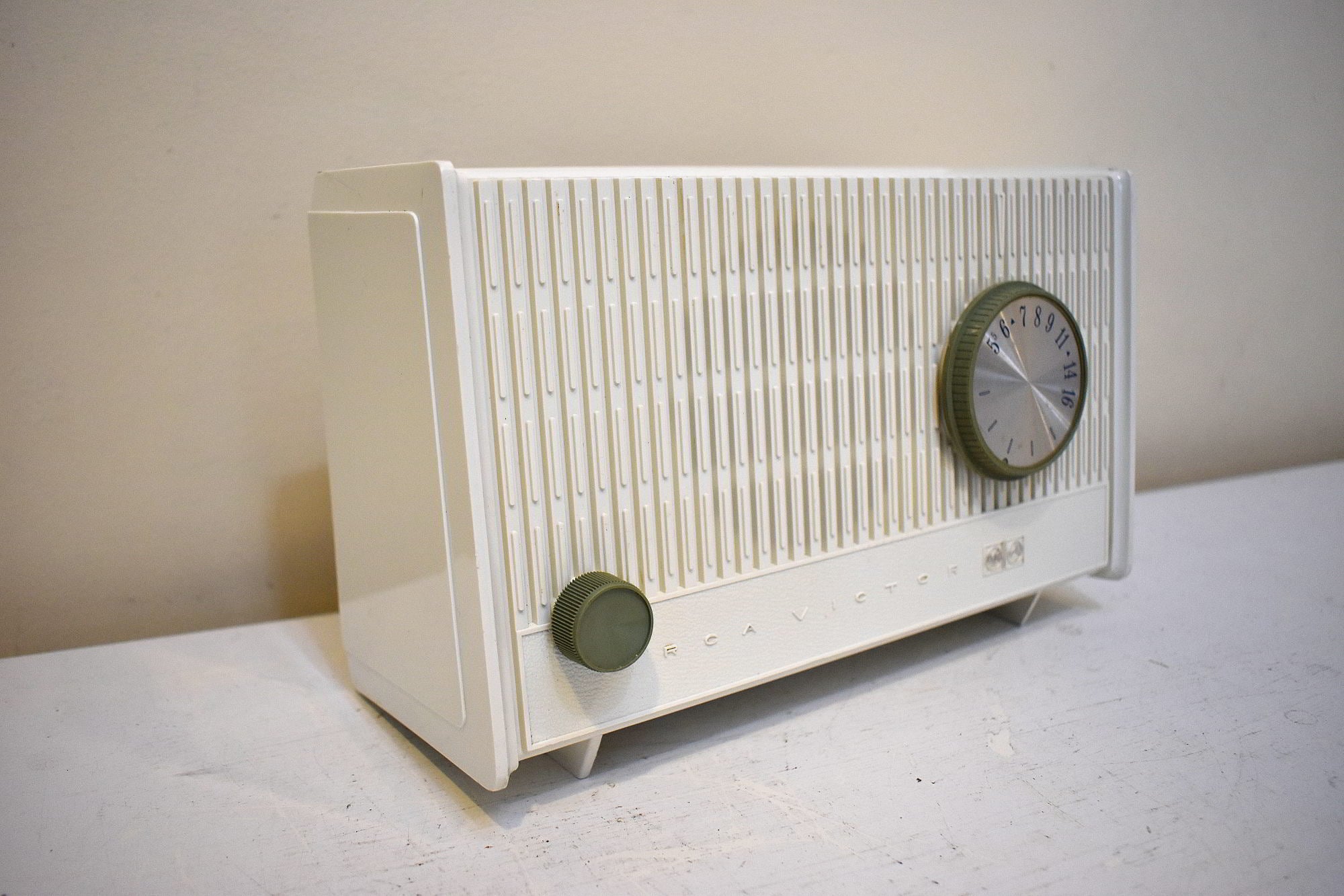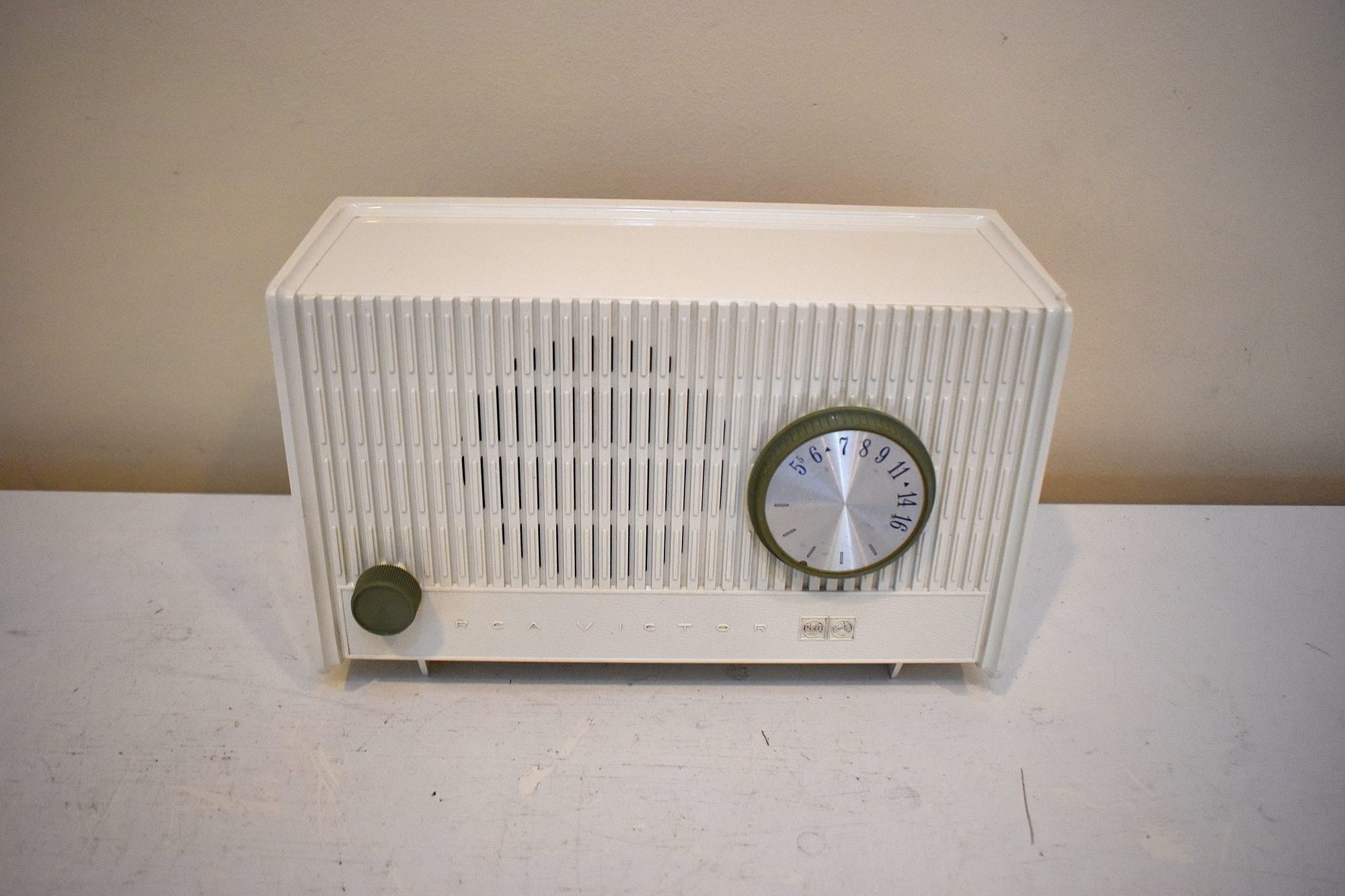 Alpina White 1964 RCA Victor Model RFA-11W AM Vacuum Tube Alarm Clock Radio Excellent Condition Sounds Terrific!