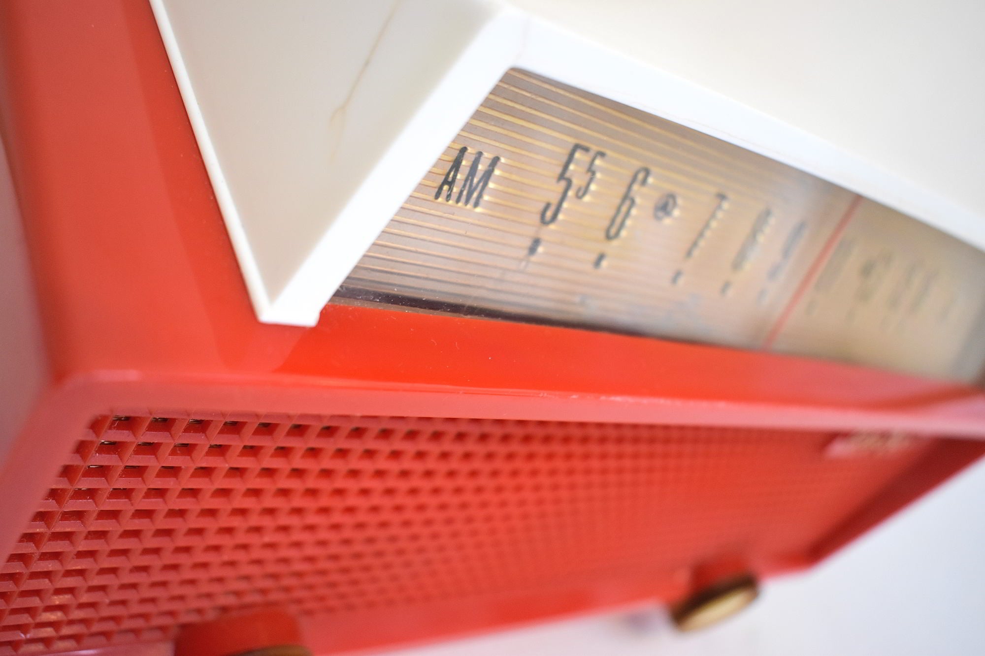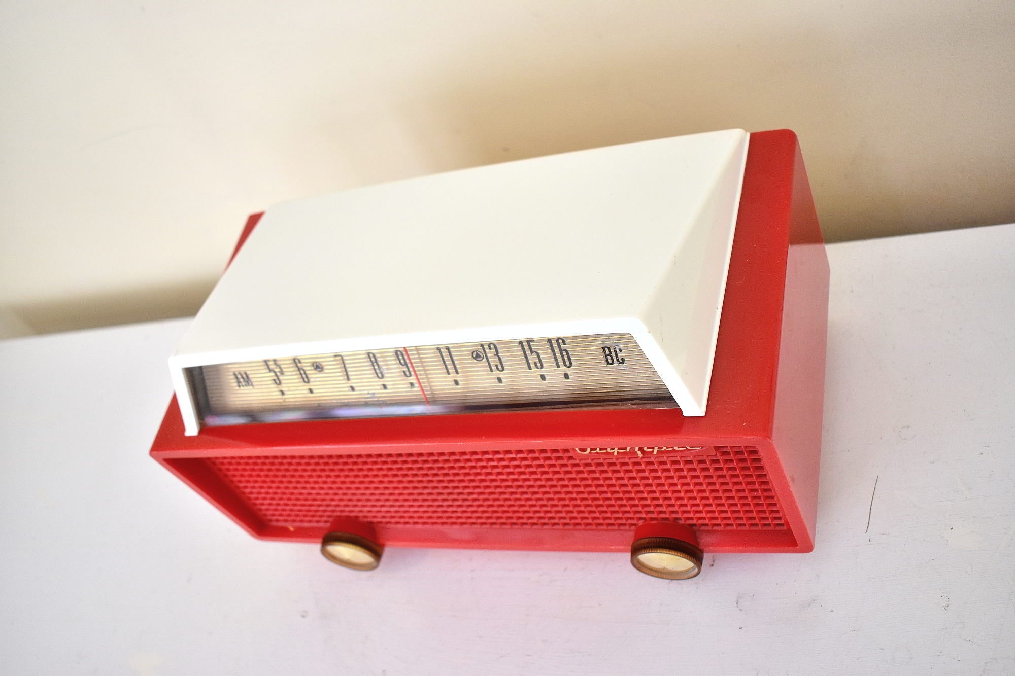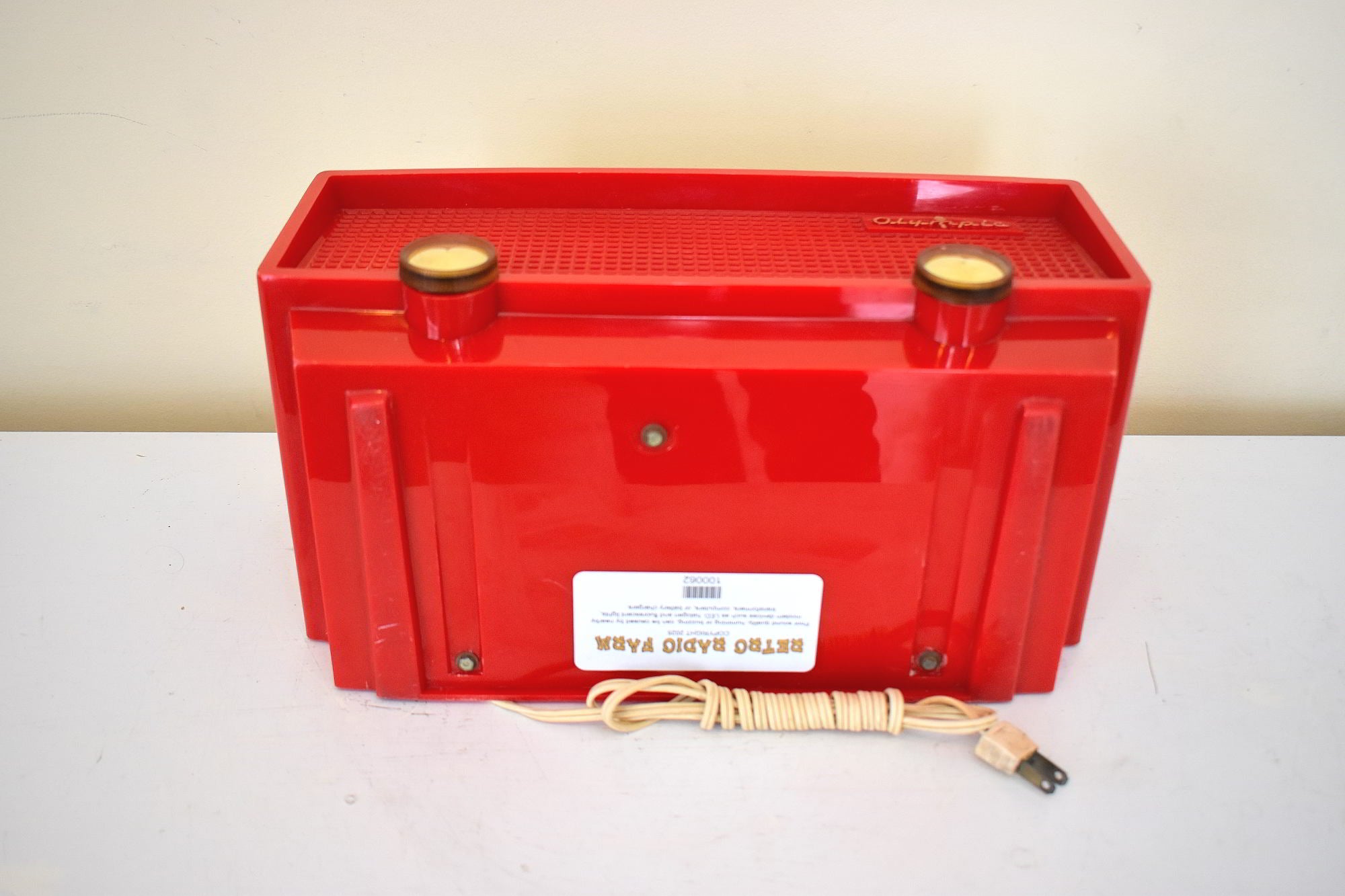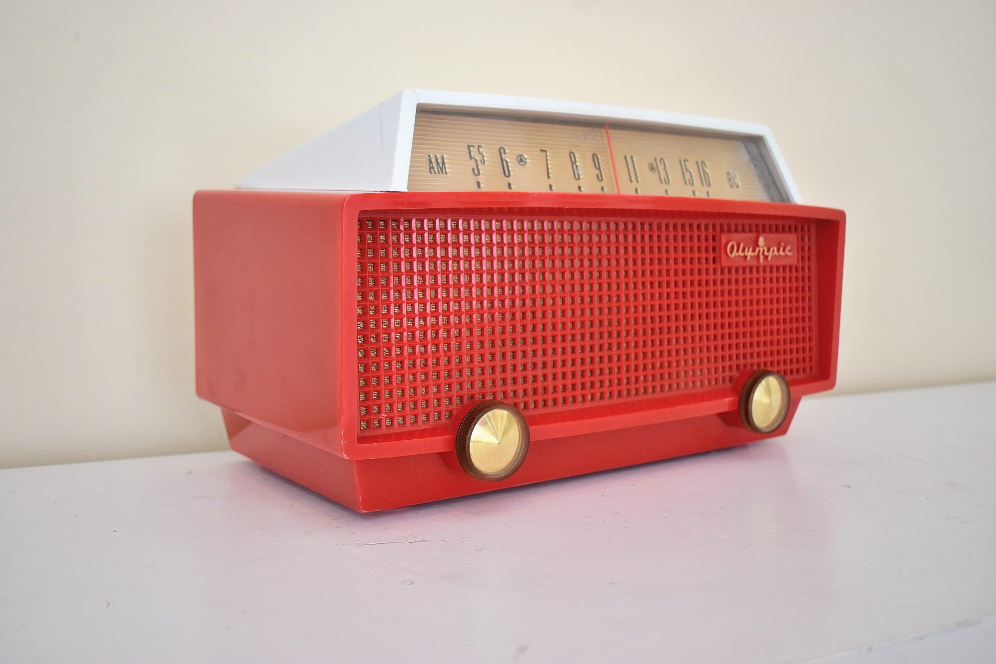 Fiesta Red White 1956 Olympic Model 552 AM Vacuum Tube Radio Sounds Great! Rare Model Color Combo!