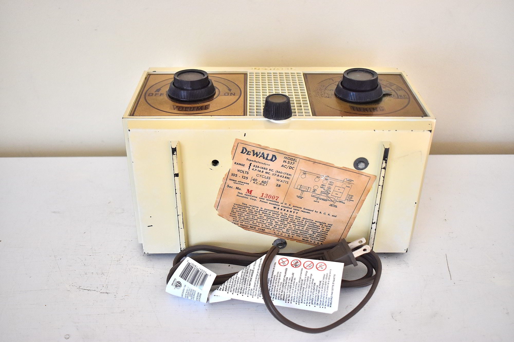 Alabaster Ivory White 1954 DeWald Model H-537 AM Shortwave Vacuum Tube Radio Excellent Condition and Sounding!