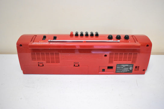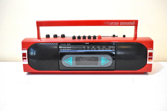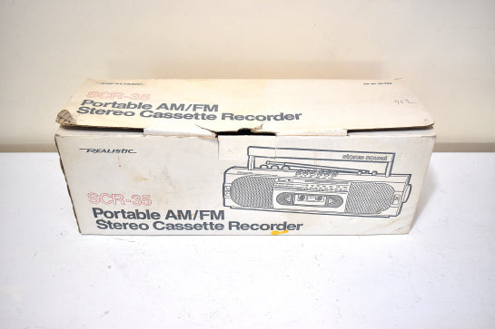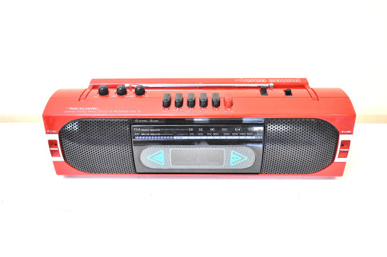 DESCRIPTION: This mini boombox AM FM radio and cassette player was manufactured by Realistic Sound in the eighties in excellent working and physical condition