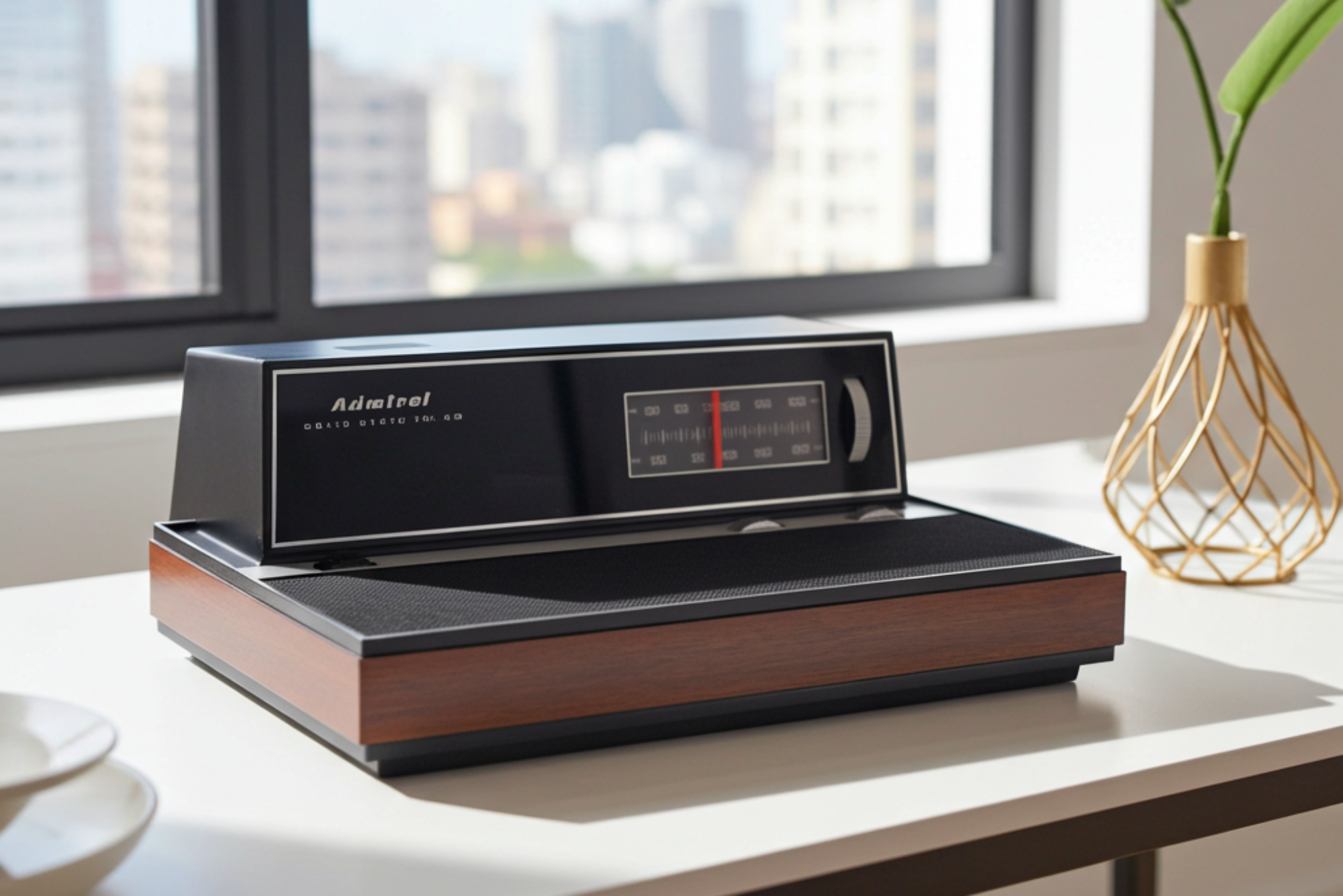 Product: antique radio, vintage radio, retro radio, vacuum tube radio, AM radio, art deco, mid-century product.
