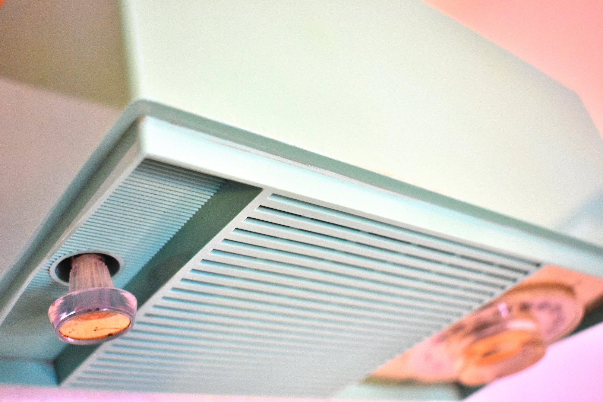 CABINET CONDITION: Cabinet is in excellent condition. Original factory molded turquoise plastic. Not repainted. No over spray. Not touched up. No chips or major scratches or missing pieces.