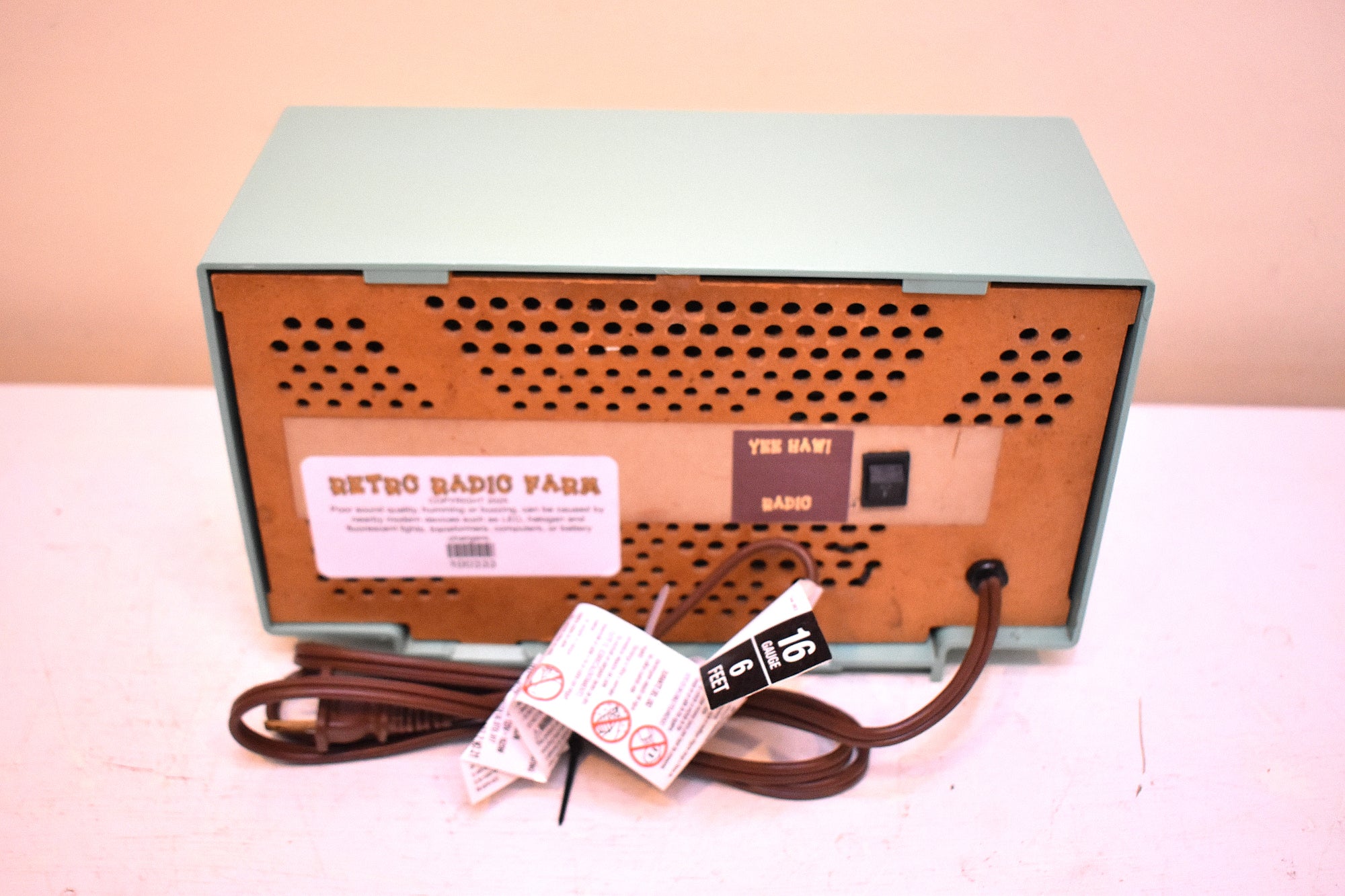 BLUETOOTH: This particular radio has been modified to play Bluetooth while retaining its original AM receiver electronics and functionality. This radio has not been gutted! Plays wirelessly from any playing device over 30 ft. New integrated Bluetooth circuitry available exclusively from Retro Radio Farm is completely internal inside the radio! No external plugs, cables, or receiver device! Switch from Bluetooth to AM radio and back with rocker switch installed. Pairs within seconds. No batteries to recharge! Sounds great! Absolutely no noise from Bluetooth circuitry!
