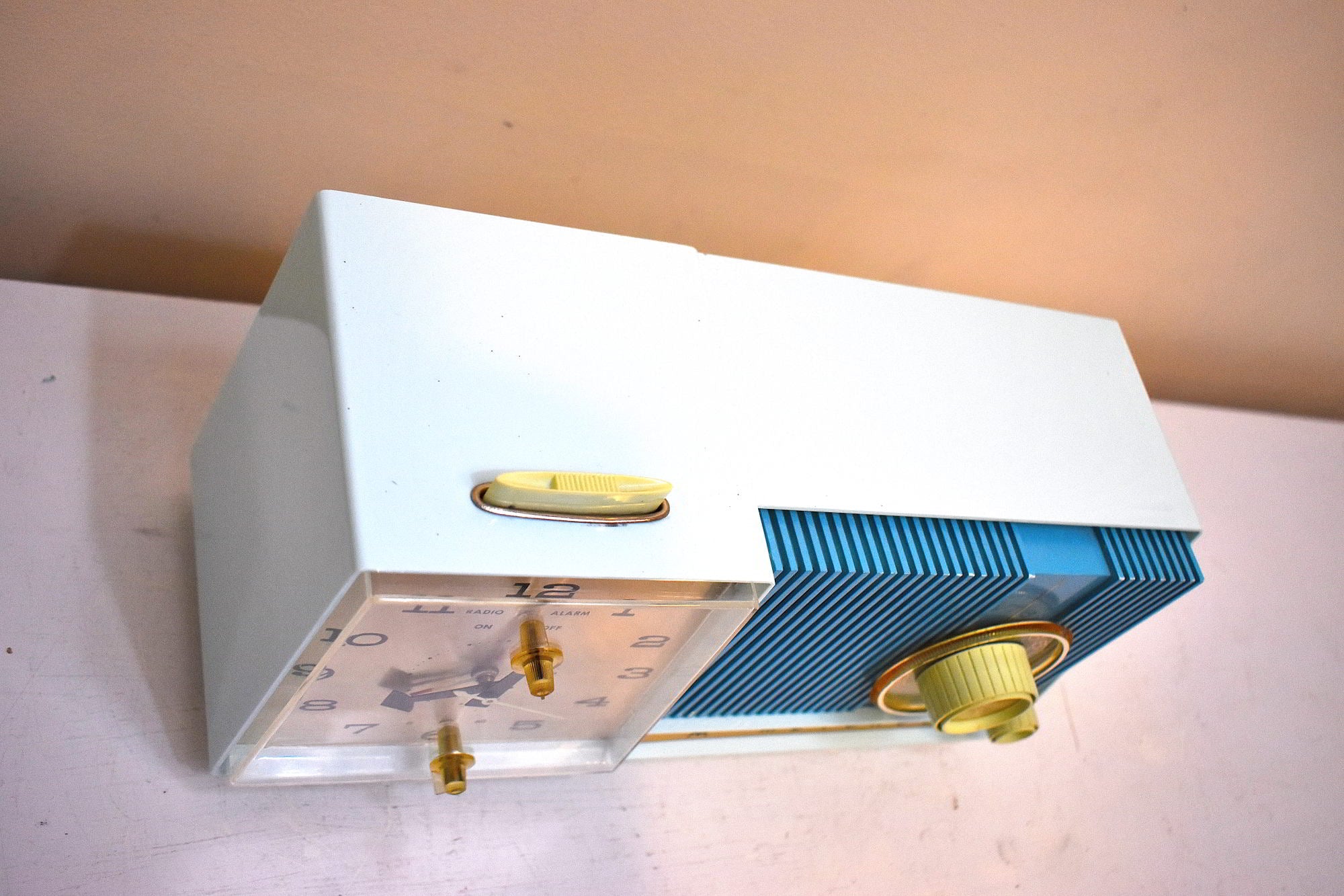 Azure Blue 1962 Motorola C18 23UL Alarm Clock Radio Vacuum Tube AM Clock Radio Excellent Plus Condition and Sounds Fantastic!